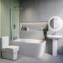 The close coupled toilet features a unique square pan design, and includes a soft close seat which features a quick-release mechanism for easy use and cleaning. It's much more hygienic too thanks to the rimless design, meaning when you flush, water is propelled around the bowl, giving it a more thorough clean. It comes complete with cistern, fittings and push button which features a water saving dual flush. The matching full pedestal basin is manufactured from ceramic and features a chrome overflow and push button waste and 1 pre-drilled tap hole. Taps and shower aren’t included, giving you the freedom to choose your own.