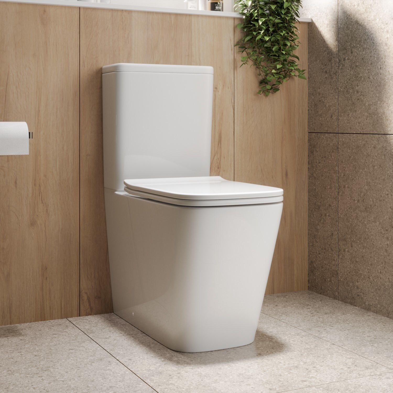 Sharp lines meet smart functionality in the Albi Close-Coupled Toilet – a modern essential for family bathrooms. With its angular square design and glossy ceramic finish, it’s the perfect fit for contemporary spaces. The rimless pan ensures superior cleanliness with every flush, while the closed-back style conceals pipework for a neat and minimalist look. A dual flush chrome button lets you choose between a 3L or 4.8L flush, helping to reduce water waste. Complete with a slimline soft-close seat made from acrylic, this toilet is built for lasting comfort and ease. The seat hinges are finished in a polished chrome.