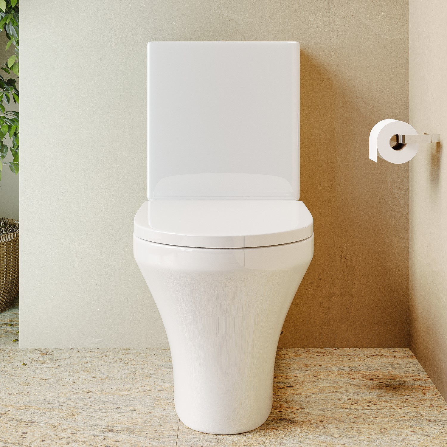 - Toilet type: Close-coupled closed back toilet