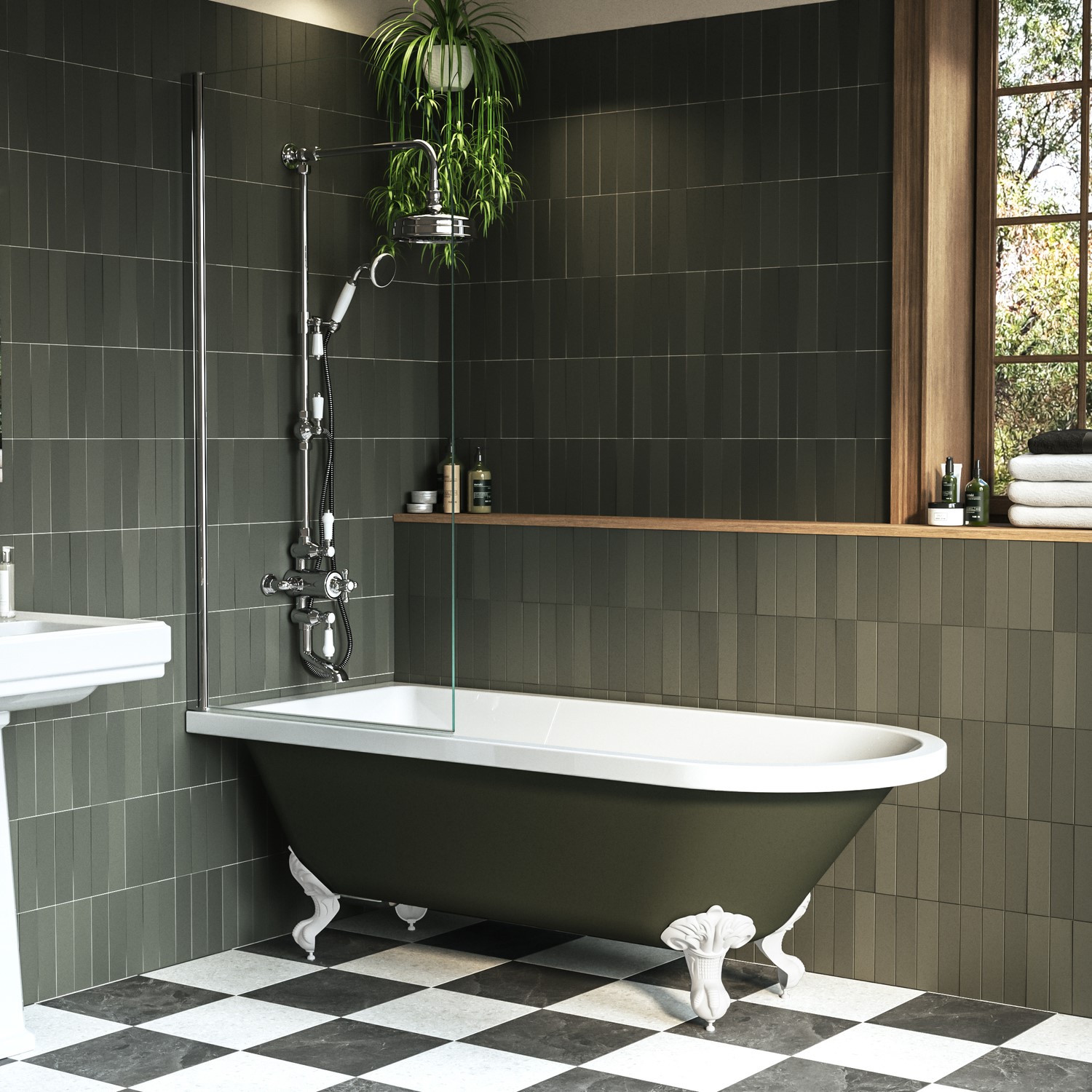 Elevate your bathroom with the Park Royal Green Freestanding Single Ended Shower Bath, a stylish blend of vintage character and modern performance. Its elegant roll-top form and white detailing make it a luxurious focal point, while the durable acrylic body ensures comfort and reliability. The easy-clean screen helps maintain a spotless look with minimal effort. With customisable tap placement and adjustable feet, this bath suits a range of spaces with ease. Complete with a full fitting kit and a 5-year warranty, it’s as practical as it is beautiful.