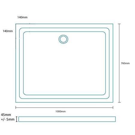 A stone resin rectangular shower tray measuring 1000mm x 760mm.