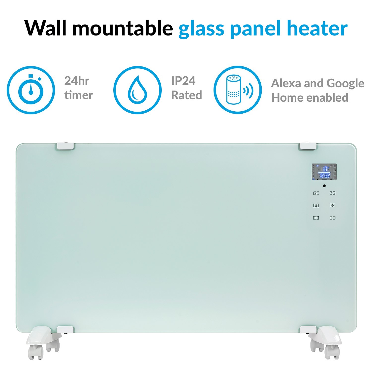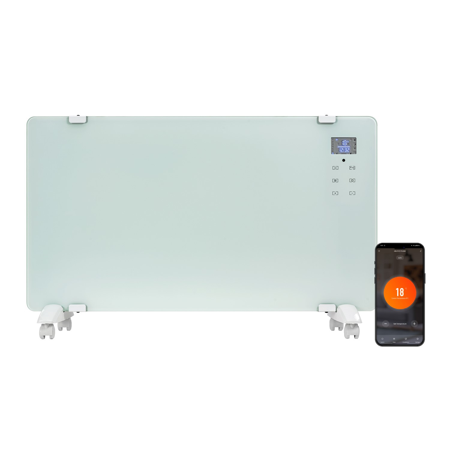 This designer glass panel heater can be both wall-mounted or portable by using the supplied stand. Its IP24 water-resistant rating allows it to be used in many spaces including bathrooms. There's no pipework required, just an electricity supply, making it reliable. It is really impressive that you can take control of all the heater functions from anywhere, at any time, using your smartphone. Simply connect the heater to your home WiFi, download the app on your smartphone, and away you go. This has been implemented for your ease and convenience to help you be more energy-efficient, allowing you to heat your room minutes before you arrive home. The advanced energy-efficient design, weekly timer, and precise digital controls have all been put in place to provide more efficiency and help you save money on those energy bills.