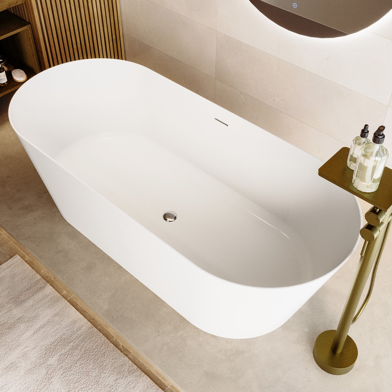 Experience pure luxury with the Monaco Freestanding Solid Surface Bath. A sculptural centrepiece designed to elevate your bathroom into a serene, spa-like retreat. Each bath Is handcrafted over 10 days by skilled artisans, this bath offers exceptional strength, heat retention, and a silky-smooth, non-porous finish that stays warm to the touch and effortlessly resists scratches and stains. Engineered with anti-yellowing pigments the bath withstands the test of time with a 5 year guarantee. Its clean, minimalist silhouette is enhanced by a central laser-cut overflow and polished chrome waste for a sleek, seamless look, with the option to upgrade to a matt white waste cover for perfect brassware coordination. With no pre-drilled tap holes, you’re free to personalise your design with floor-standing or wall-mounted taps, creating a striking statement of indulgent comfort and timeless elegance. More than just a bath, the Monaco is the ultimate expression of luxury, inviting you to sit back, relax, and enjoy perfection every time you step in.