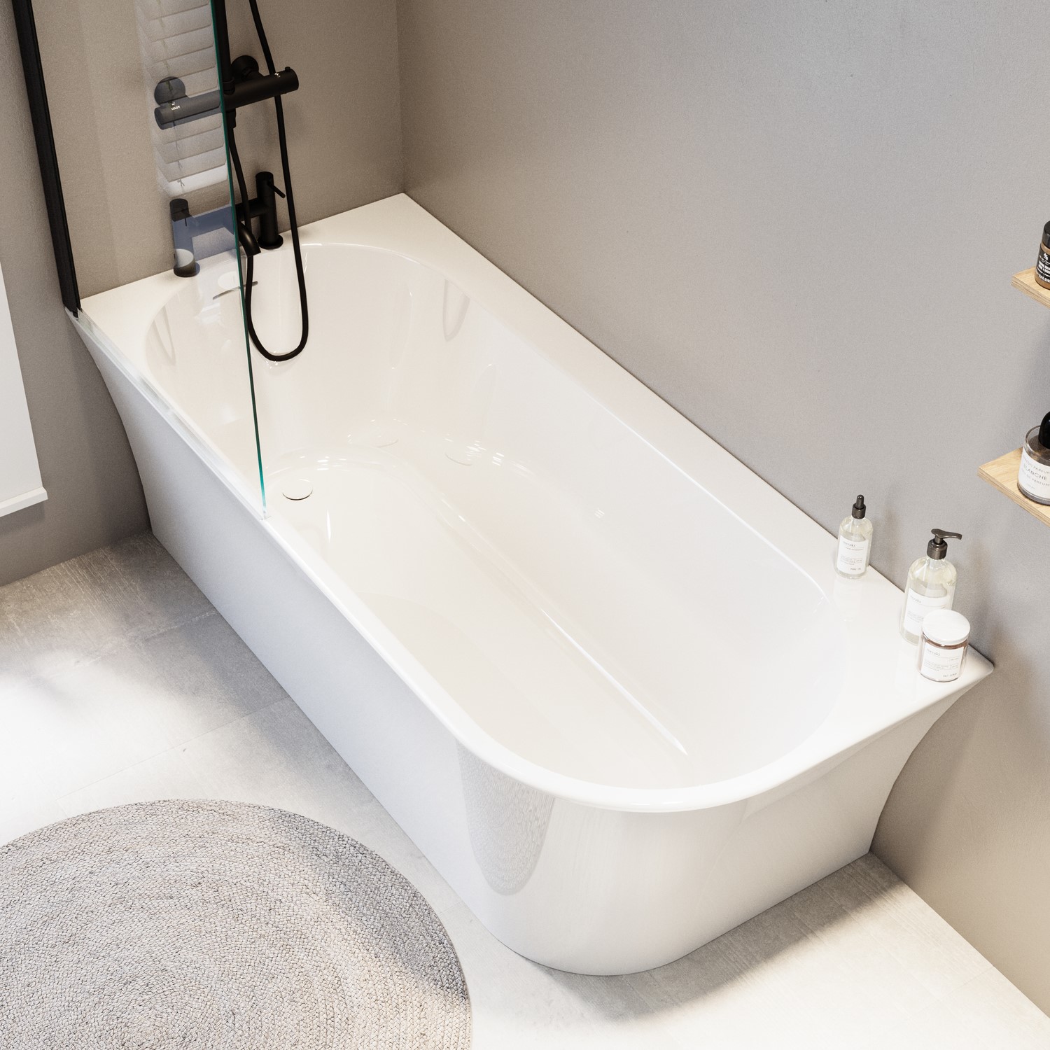 This bath can also be used as a shower bath, so explore our range of bath screens to complete your bathroom. The Taurus matt black shower bath screen stands 1450mm high, effectively preventing water from splashing out, and rotates 90 degrees both inwards and outwards for easy access. Its slim 6mm toughened glass features an easy-clean coating, allowing water to run off effortlessly and reducing the need for frequent wiping. All fittings and fixtures are included for a hassle-free installation, making it a stylish and practical addition to your bathroom.