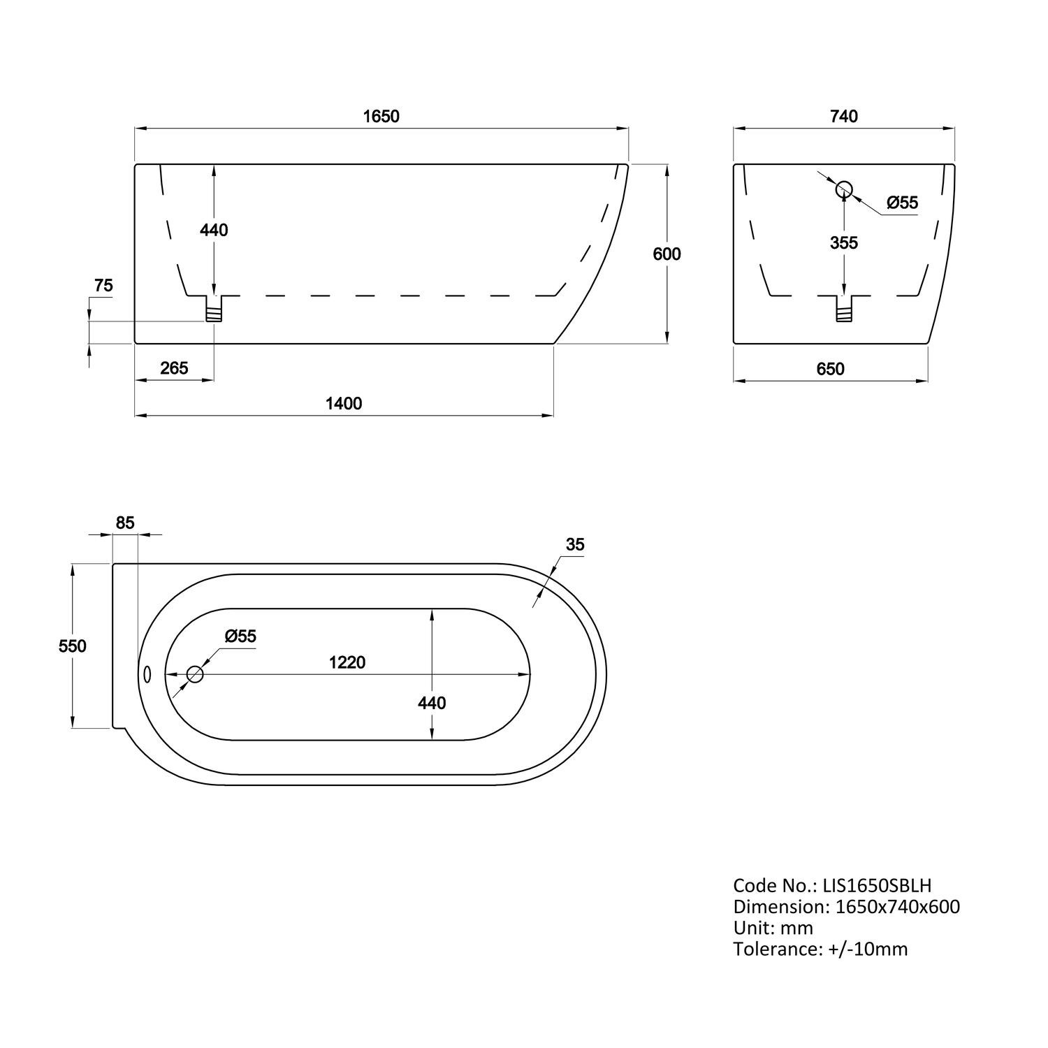 - Dimensions: L1650 x W740 x H600 mm