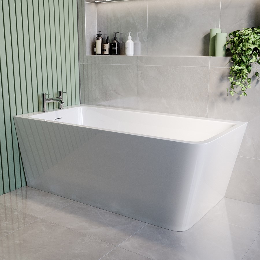 Kona is a unique rectangular shape for a freestanding bath, and makes for a great statement piece in your bathroom. It is freestanding, so there is no panel, and has a seamless look around the sides of the bath which are not against the wall.