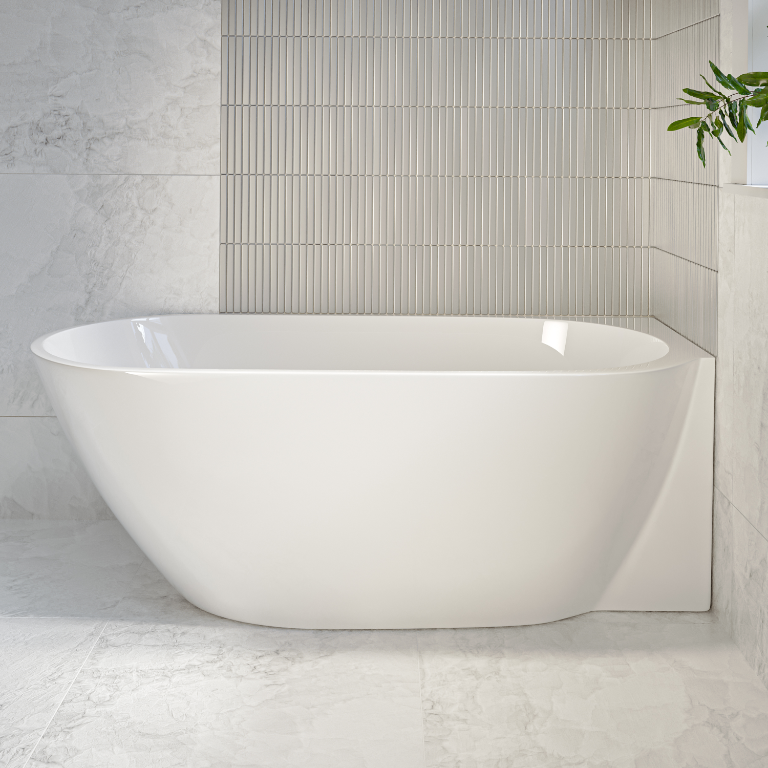 The modern Lisbon freestanding shower bath combines the comfort of a bath with the convenience of shower in one sleep, space-spacing design. It's sculptural matt white finish makes a stylish focal point, while the defined showering end offers generous standing space and a built-in ledge for toiletries. Made from 4-6mm acrylic, reinforced with fibreglass and an encapsulated baseboard, it delivers lasting strength, warmth, and a 240-litre capacity for both indulgent soaks and refreshing showers.