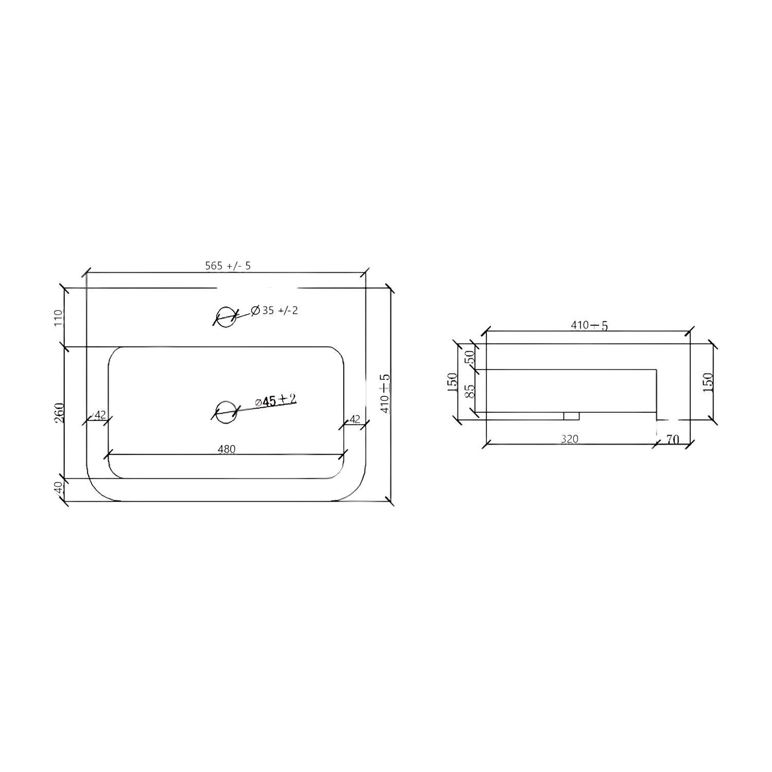 x1 GRADE A1 - Semi Recessed Inset Basin 570mm- Scudo