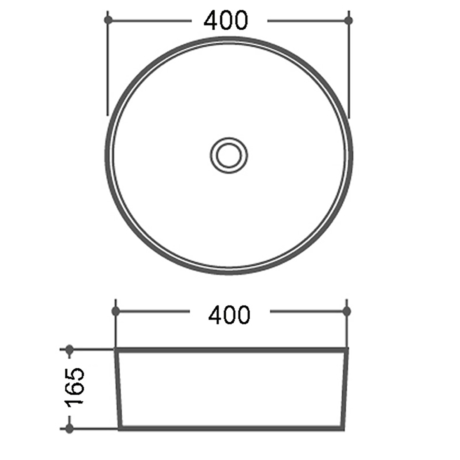 - Basin dimensions: H165 x W400 x D400 mm