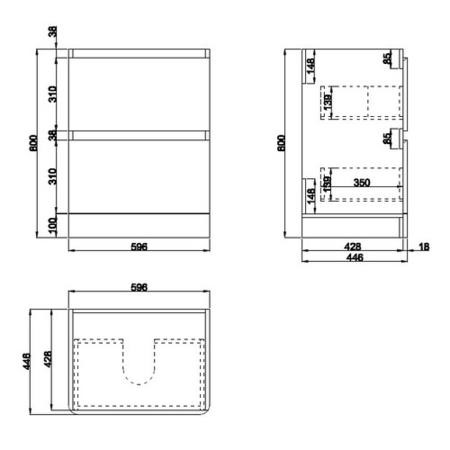 - Vanity Unit Dimensions: H800 x W600 x D446mm (give or take -/+ 3mm per measurement)