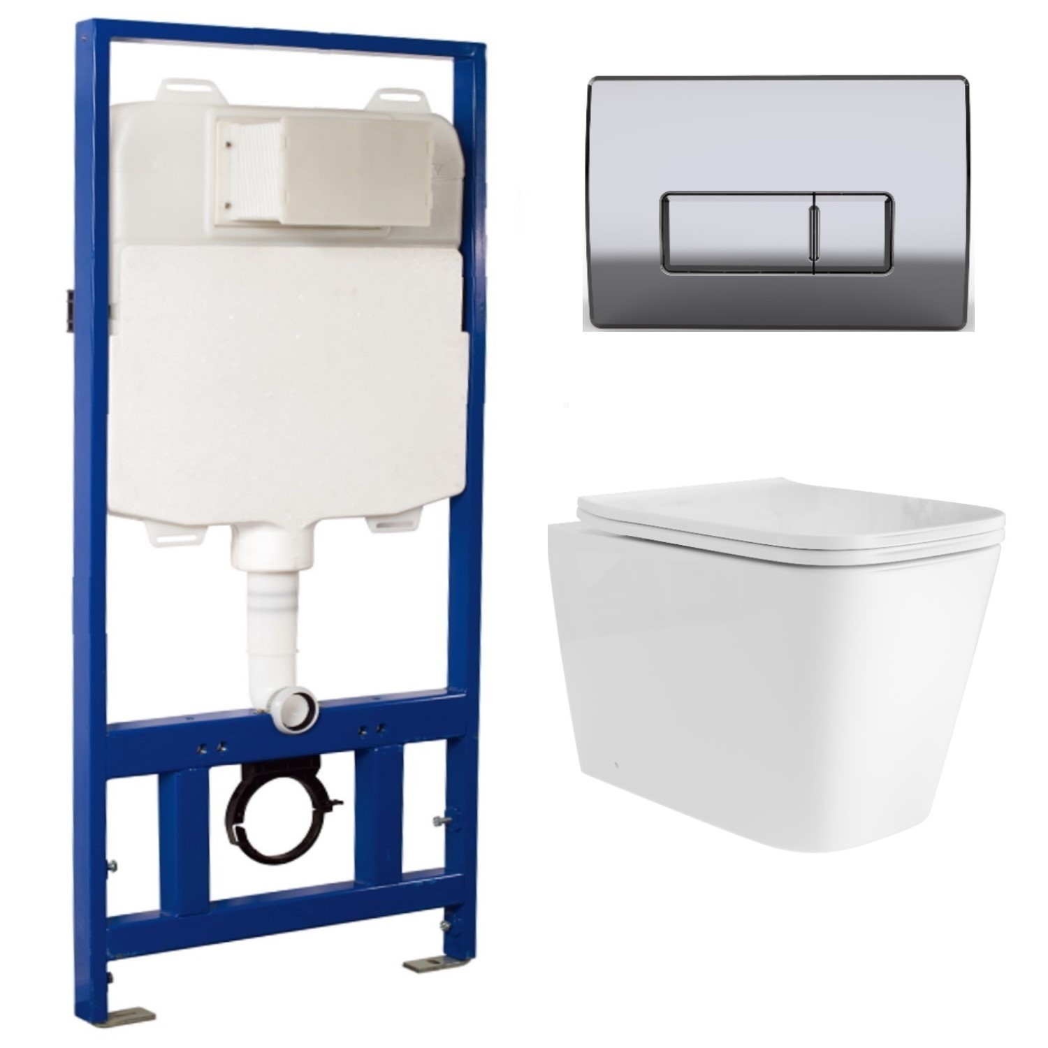 This wall hung toilet with a square pan design has been manufactured from high-quality ceramic and makes a perfect addition to any bathroom. It's much more hygienic too thanks to the rimless design, meaning when you flush, water is propelled around the bowl, giving it a more thorough clean. Also, it's easier to clean as it's off the floor, giving the effect of a floating toilet.