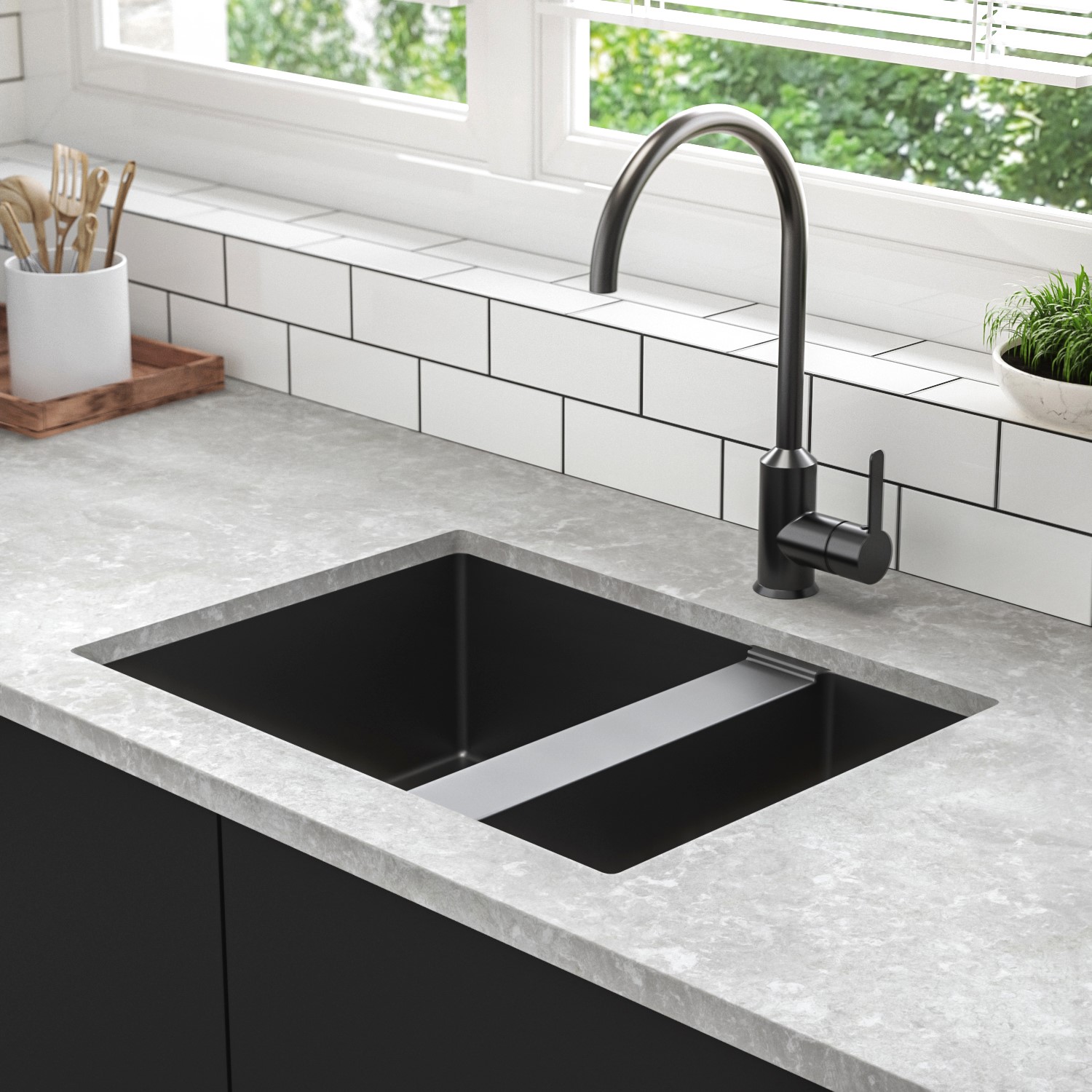 - Modern reversible 1.5 bowl carbon black kitchen sink