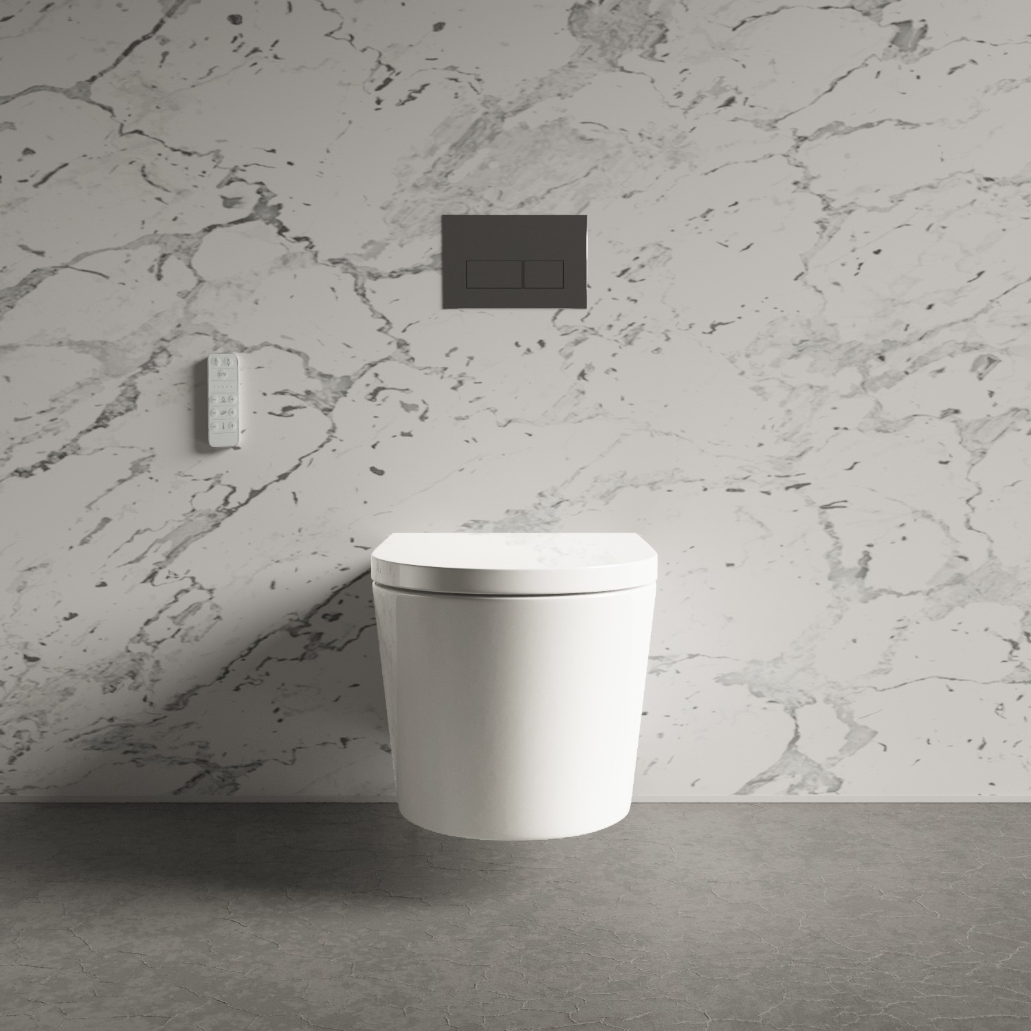 This smart and stylish toilet brings your bathroom into the 21st century. Combining a toilet and bidet, it offers ultimate personal hygiene while also being environmentally friendly and saving you money. Taking inspiration from futuristic Japanese toilet design, it offers multiple functions that are simple to operate by using the remote control or the integrated dial on the toilet, including: