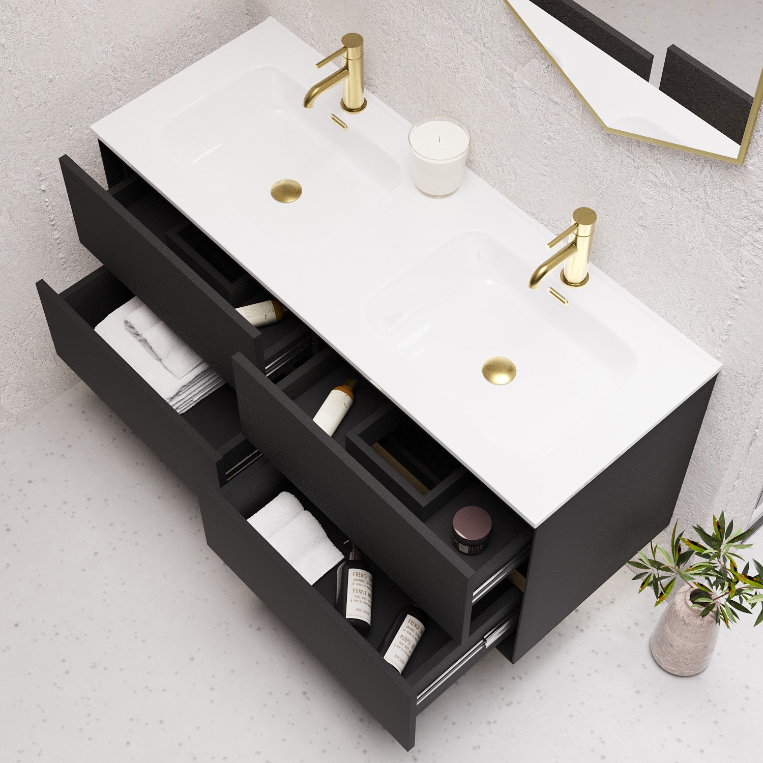 Grade A2 - 1200mm Black Wall Hung Double Vanity Unit with Basin - Roxbi