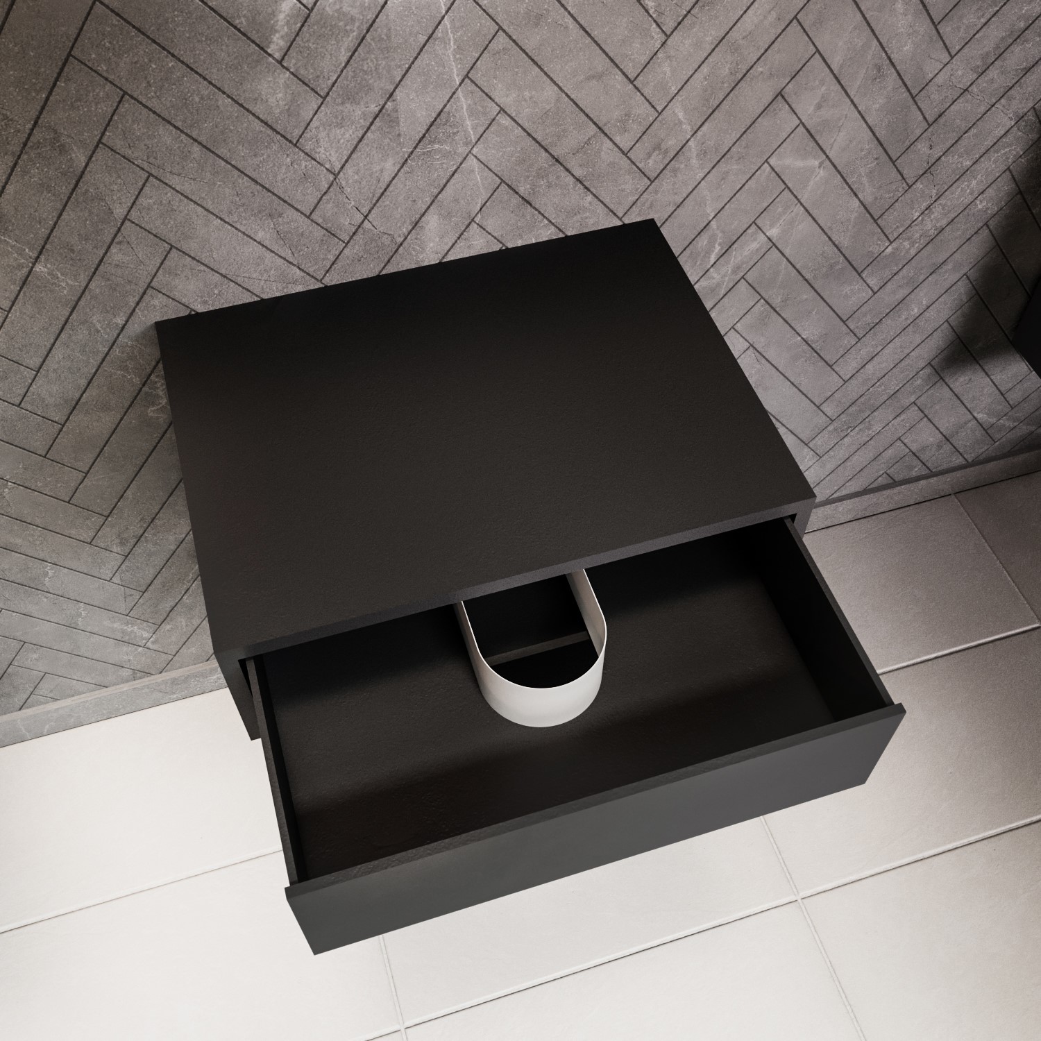 Finished in a deep and striking matte black adding a pop of decadence to your room and is easily paired with other colours and neutrals. Finish off the look by choosing your desired counter top basin and tap. The Lugo is a chic yet affordable storage solution without compromising style or quality. This sink unit with a push to open drawer arrives fully assembled, simply follow the installation instructions, install the basin and tap and enjoy!