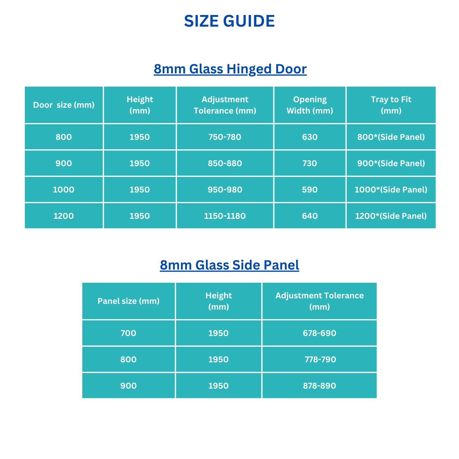 Hinged shower doors allow for a spacious enclosure suitable for any size bathroom, and are perfect for a modern touch. The way the hinge shower doors swing both inwards and outwards mean they have the widest opening to allow maximum accessibility and have a total opening range of 180 degrees (90 degrees in and 90 degrees out). The height of 1950mm prevents shower spray from reaching the bathroom.
