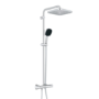 This GROHE Vitalio Comfort 250 shower system gives you all the power, style and eco-friendly features, plus the reliability of the latest thermostat technology. This exposed system for wall-mounting consists of a 250mm head shower, 110mm hand shower, thermostat, shower rail with 390mm swivel-action shower arm and gliding element to adjust the hand shower, plus a 1750mm hose with TwistStop design. The head shower offers a gentle, relaxing Rain Spray. The hand shower comes with a ShockProof silicone ring to protect it against drops or knocks. It has 2 spray patterns, the soft Rain and the powerful, targeted Jet Spray. Both are easy to access using the innovative GROHE SmartSwitch diverter on the back of the shower head. GROHE DreamSpray technology ensures an even flow from every SpeedClean anti-limescale nozzle, which can all be cleaned with a simple brush of your finger. The shower system delivers water at a constant temperature with no nasty surprises, thanks to GROHE’s TurboStat technology. And the GROHE Water Saving technology significantly reduces water and energy consumption without compromising on performance. For scalding protection the GROHE SafeStop safety button is set at 38°C to prevent especially children from unintentionally turning up the water temperature too high. And the optional GROHE SafeStop Plus limiter can be set to 43°C for an extra level of safety. Switch between head and hand shower and adjust the volume, all via one handle, with the AquaDimmer function. The durable and easy-care GROHE Long-Life finish keeps the system looking pristine for a lifetime. Thanks to the GROHE QuickSpanner the thermostatic mixer can be mounted with no need for further tools.