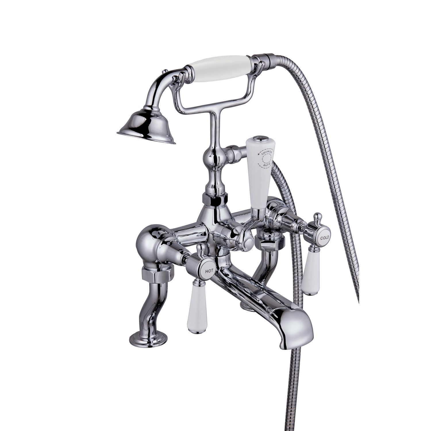 - Freestanding bath shower mixer tap with traditional style handles