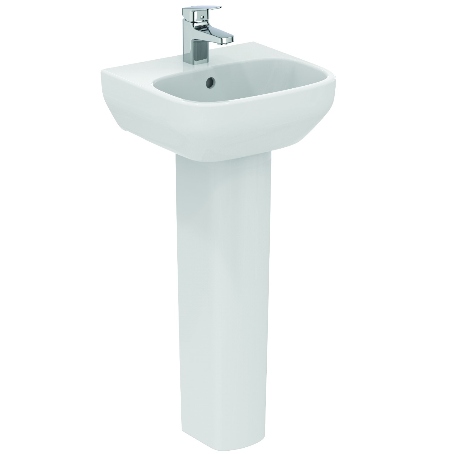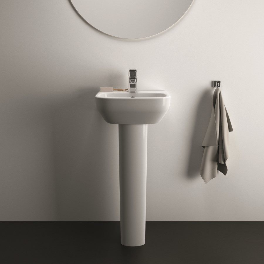 Bring effortless elegance to your space with the i.Life A 400mm Full Pedestal Basin from Ideal Standard. Combining modern rectangular curves with a practical pedestal that conceals unsightly pipework, this sink is designed for both beauty and function. The compact 400mm width and 360mm depth makes this size basin perfect for smaller bathrooms, cloakrooms or en-suites. Featuring one central tap hole, it's ideal for a mono basin mixer tap of your choice. The overflow is coverless meaning you can pair this basin with brassware in any finish. Crafted from high-quality ceramic and finished with a glossy enamel coating, it’s built to stand the test of time while adding a fresh, contemporary touch to your bathroom, and is backed with Ideal Standard's lifetime guarantee for peace of mind.