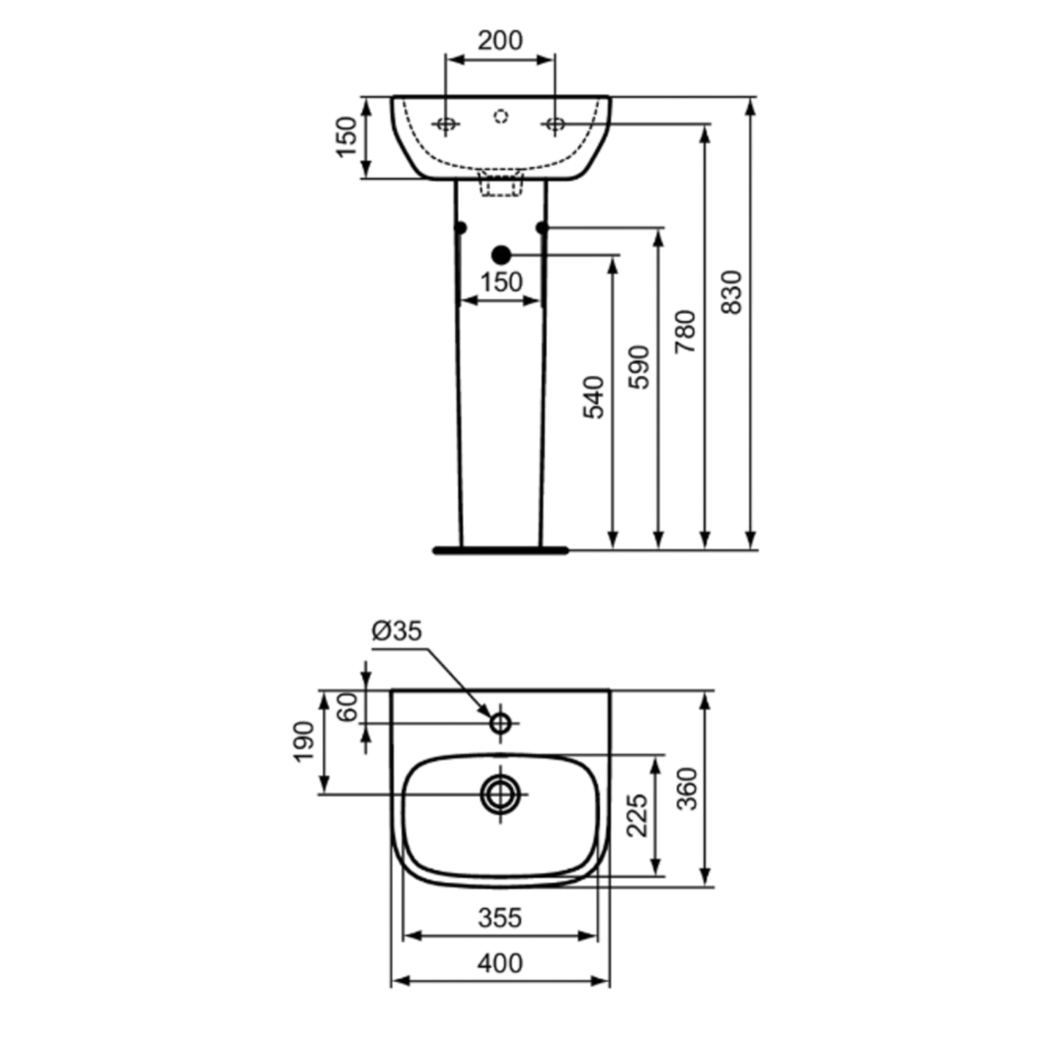 - Overall dimensions: H830 x W400 x D360 mm