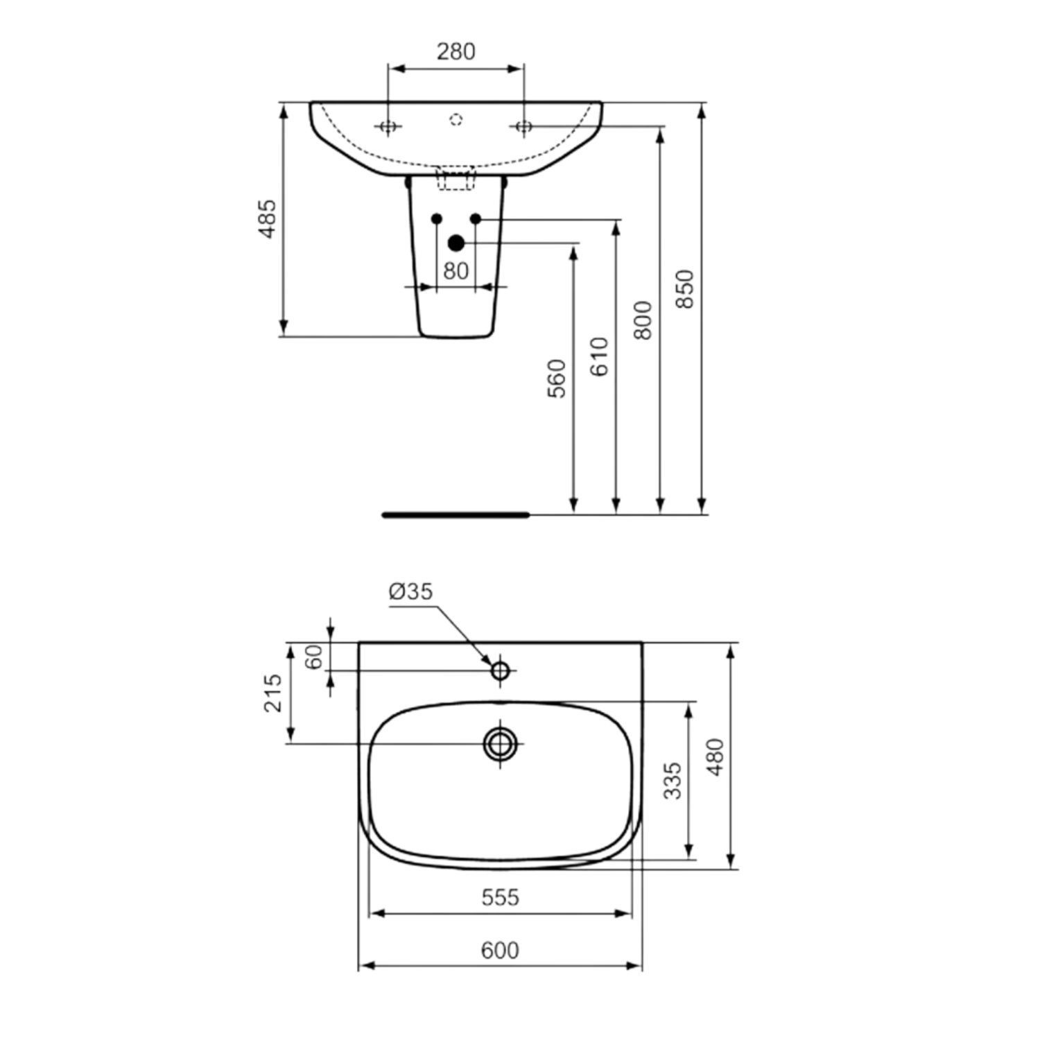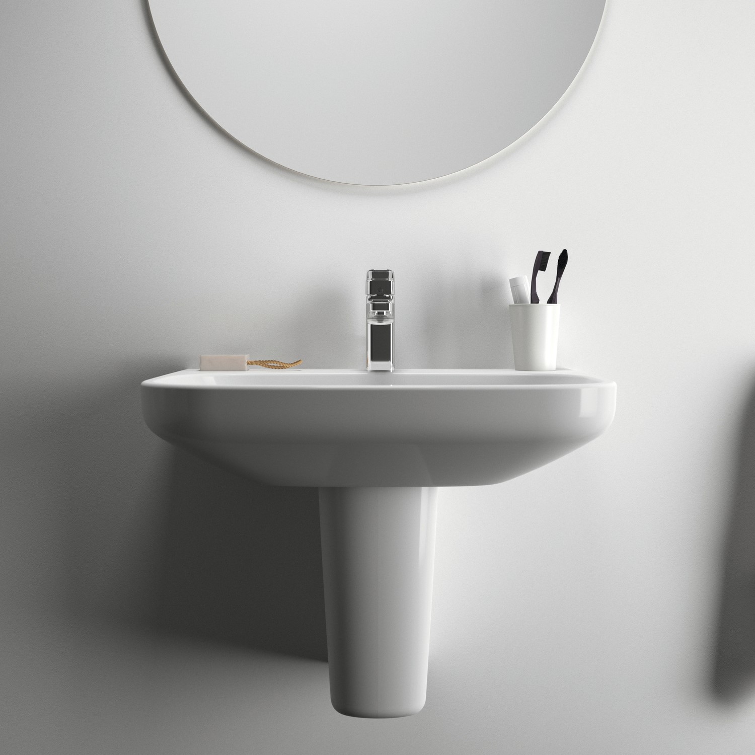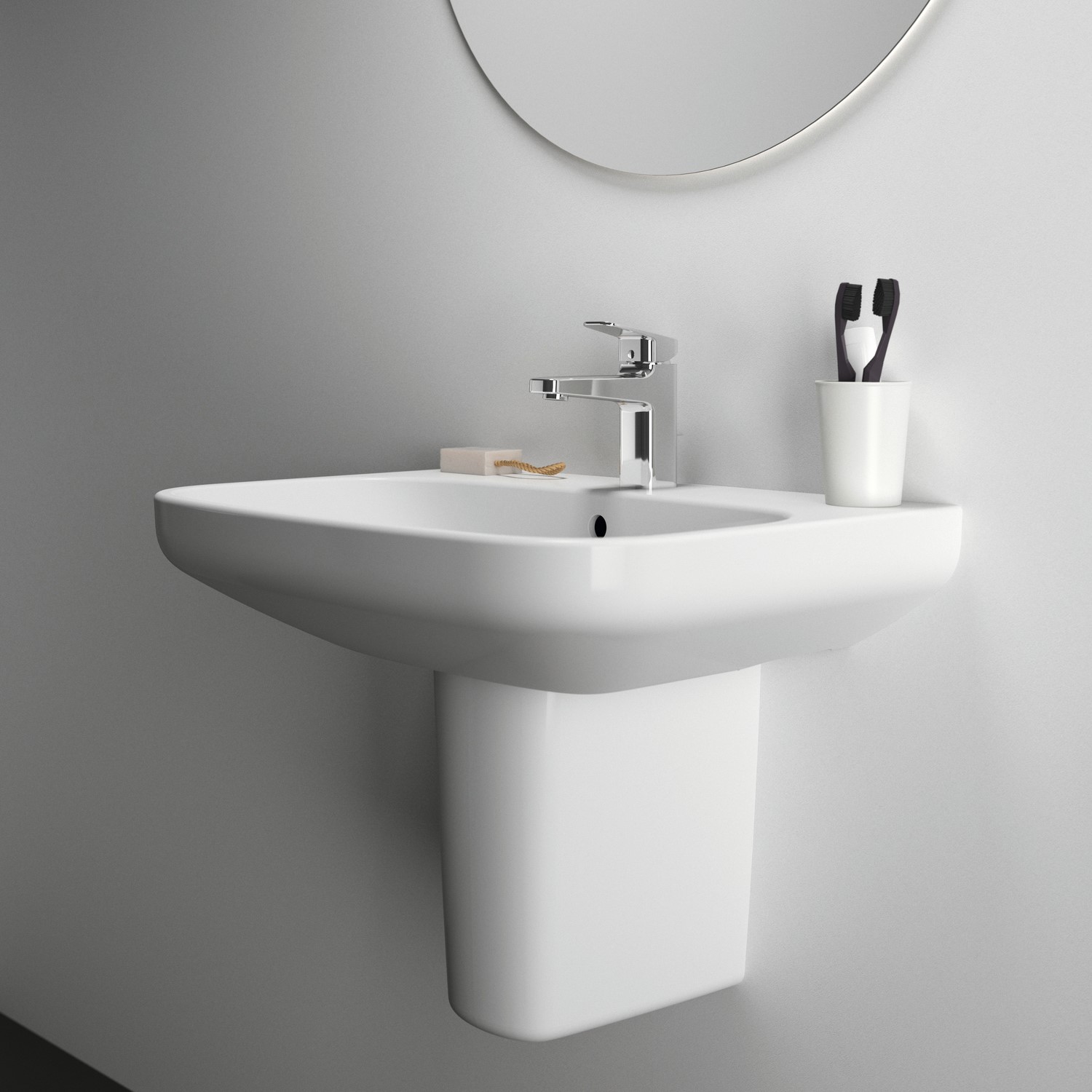 Bring effortless elegance to your space with the i.Life A 600mm Semi Pedestal Basin from Ideal Standard. Combining modern rectangular curves with a practical semi-pedestal that conceals unsightly pipework and gives the illusion of open floor space, this sink is designed for both beauty and function. Featuring one central tap hole, it's ideal for a mono basin mixer tap of your choice. The overflow is coverless meaning you can pair this basin with brassware in any finish. Crafted from high-quality ceramic and finished with a glossy enamel coating, it’s built to stand the test of time while adding a fresh, contemporary touch to your bathroom, and is backed with Ideal Standard's lifetime guarantee for peace of mind.