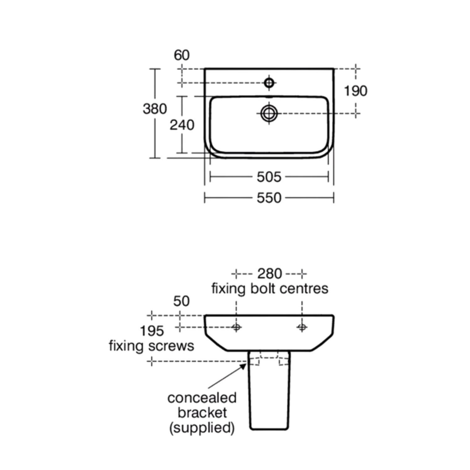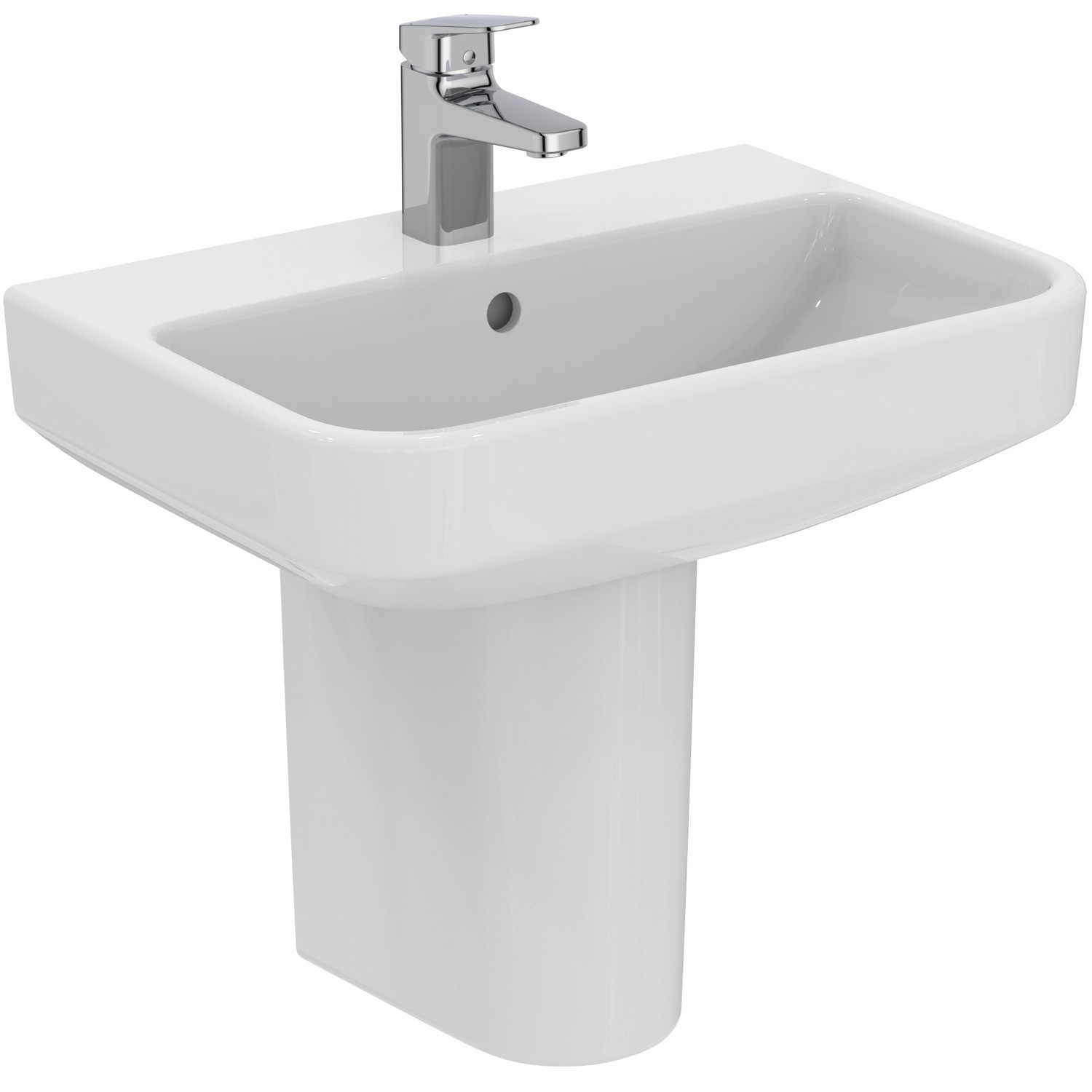 Enhance your bathroom with the i.Life S Compact 550mm Semi Pedestal Basin from Ideal Standard. Combining modern rectangular curves with a practical semi pedestal that conceals unsightly pipework whilst still giving the illusion of open floorspace, this space-saving sink is designed for both beauty and function. The basin design features a shorter 380mm depth making this sink perfect for compact or smaller spaces, such as cloakrooms or en-suites. Featuring one central tap hole, it's ideal for a mono basin mixer tap of your choice. The overflow is coverless meaning you can pair this basin with brassware in any finish. Crafted from high-quality ceramic and finished with a glossy enamel coating, it’s built to stand the test of time while adding a fresh, contemporary touch to your bathroom, is easy to clean and maintain whilst being backed with Ideal Standard's lifetime guarantee for peace of mind.
