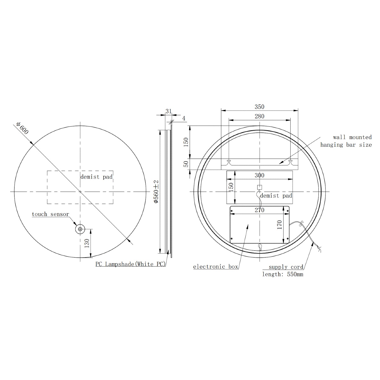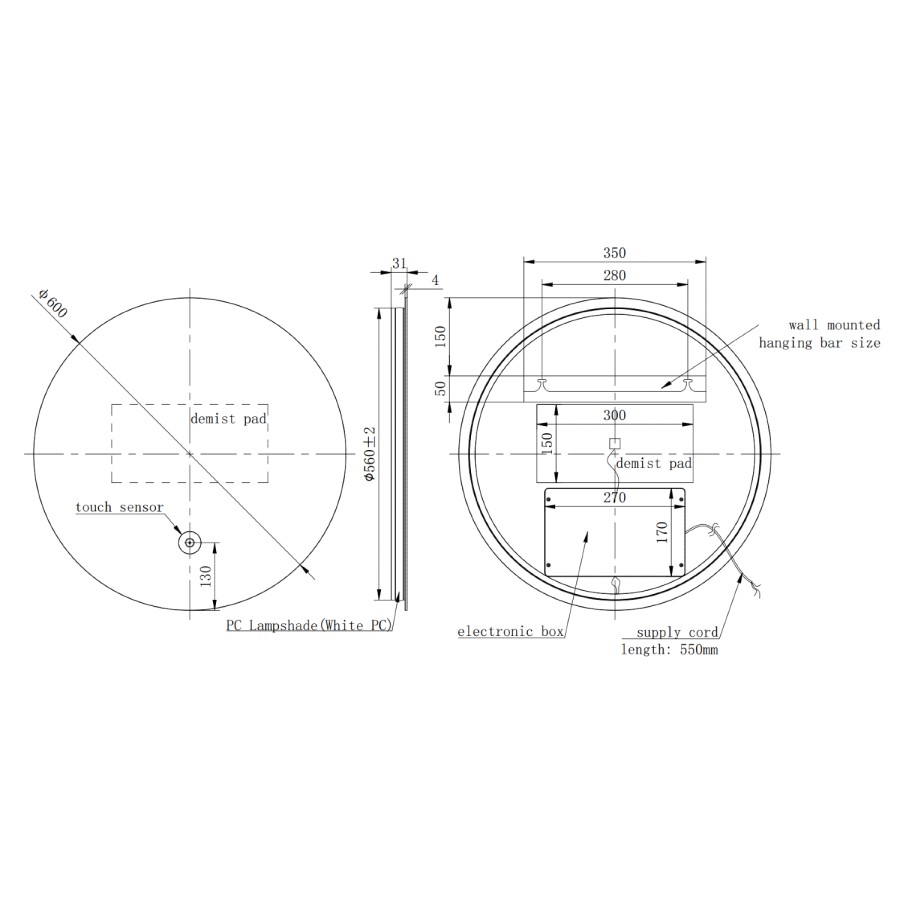 - Dimensions: W600 x H600 x D31 mm