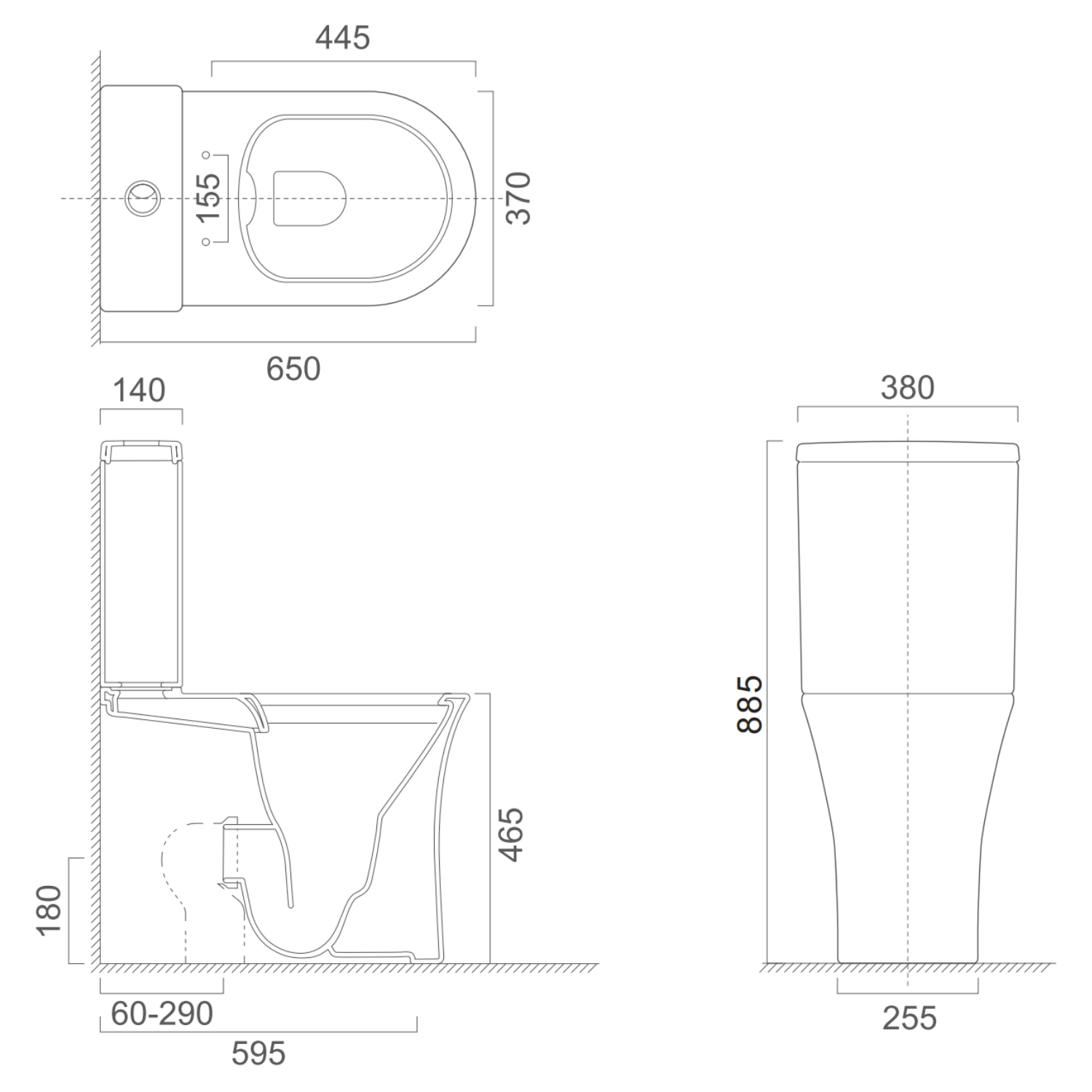 - Overall dimensions: H885 x W380 x D650 mm
