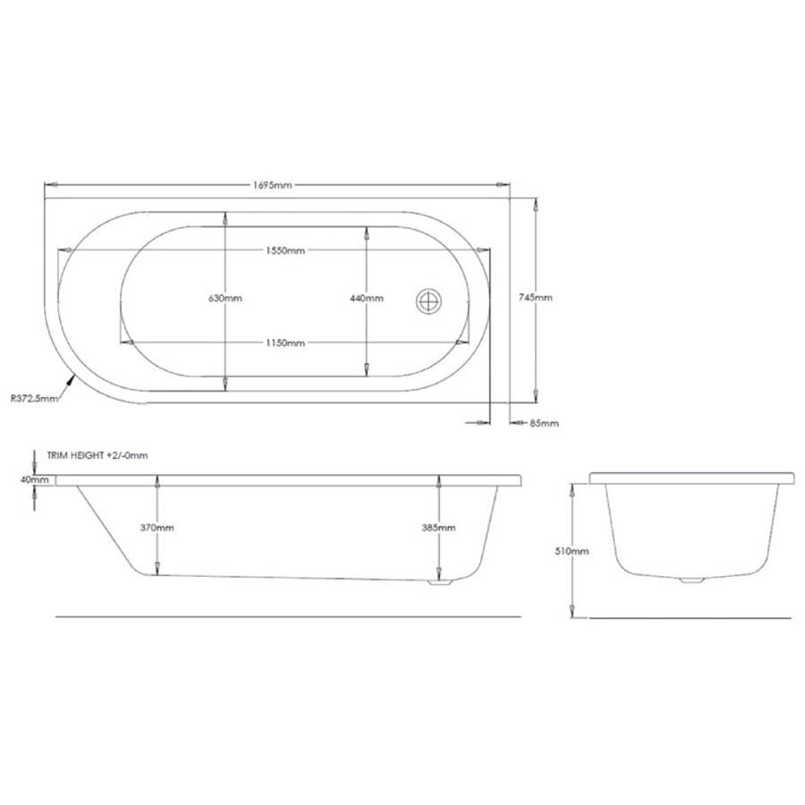 Designed with modern bathrooms in mind, the J shape is ideal where space is limited but style is essential. Introducing the stylish J-shaped right-handed acrylic bath, this stylish and practical bath is ideal for bathrooms where space might be limited. This single-ended bath features a curved corner end for ease of movement around the end of the bath. The bathtub comes with pre-drilled waste and overflow holes, and also includes a set of bath legs, a matching curved acrylic bath panel, and an on-trend matt black bath screen with a towel rail.