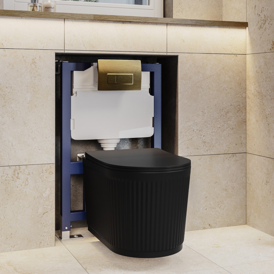 Short 820mm Pneumatic Fixing Frame and Cistern: This set includes the 820mm pneumatic fixing frame and cistern, providing a secure, space-saving solution that allows for easy installation and durability. The flush is finished in brushed brass to match your bathroom theme.