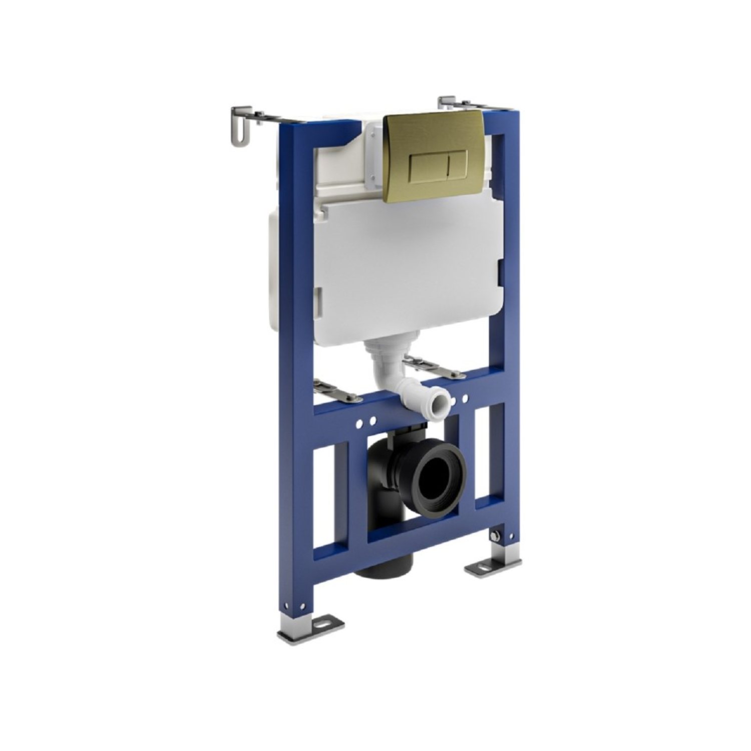 The striking matt black finish creates a bold focal point, while the brushed brass flush plate introduces a refined contrast for a truly contemporary, high-end look. Designed with a wall hung installation, this set conceals pipework and the cistern within the frame, delivering a clean, minimalist finish while maximising floor space.