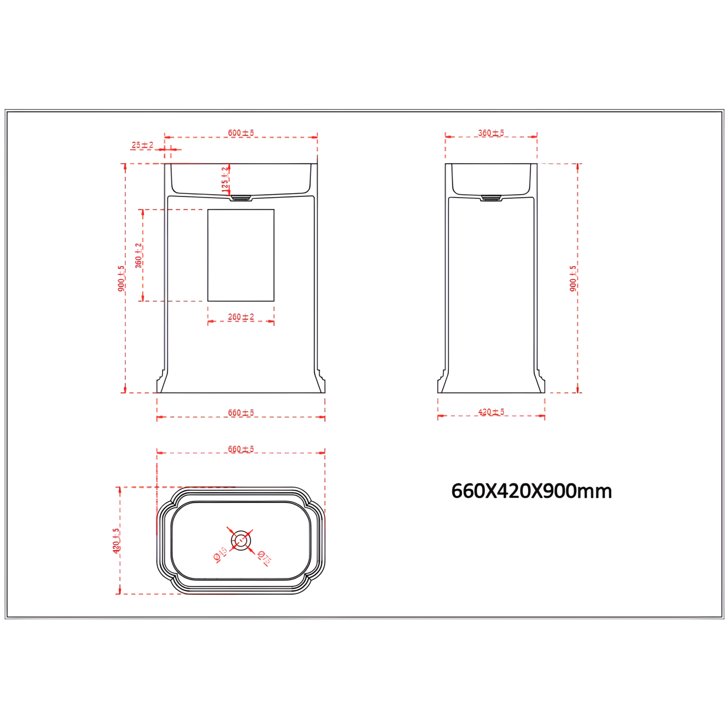 - Overall dimensions: H900 x W660 x D420mm