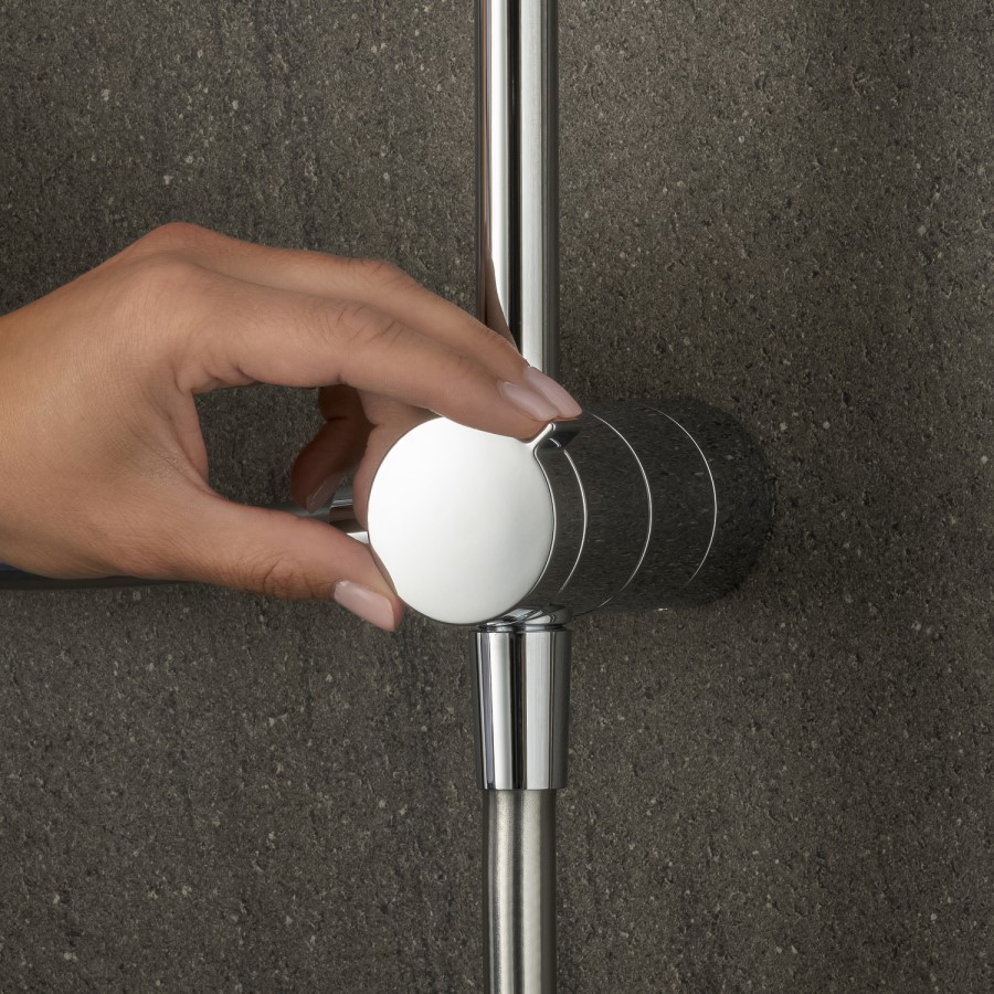 - Thanks to its adjustable arm, you can position the deluge overhead precisely where you like it.