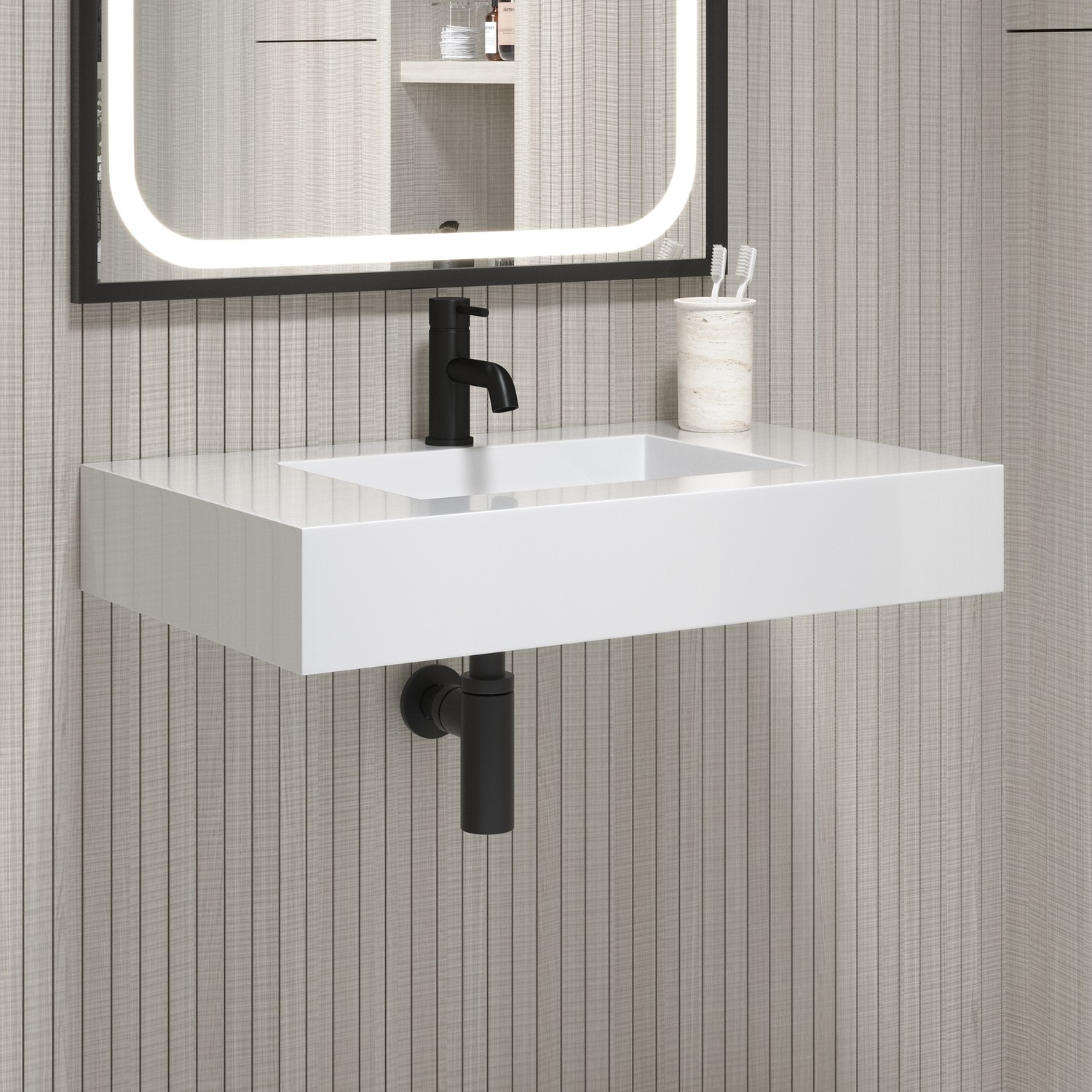 Transform your bathroom into a modern sanctuary with the 800mm wall hung resin basin with built-in drain. Its floating design elevates your bathroom style while maximizing space with the open area beneath. This basin is crafted from durable resin, offering excellent resistance to everyday wear and tear like cracks and scratches, making it perfect for daily use. The gloss white finish brightens your room and simplifies maintenance, making it pristine with minimal effort. Designed with functionality in mind, the Oslo basin includes a pre-drilled tap hole and a built-in drain for seamless installation and use. Pair with one of our decorative bottle trap to complete the look.