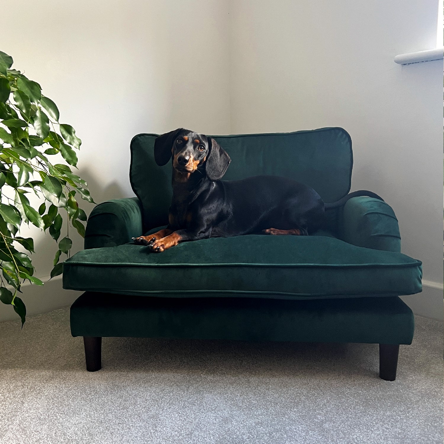 Upholstered in soft, plush velvet and crafted with dark wood legs for a sturdy, elegant finish, this mini sofa brings a touch of sophistication to your pet’s lounging space. It features removable back and seat cushions for easy plumping and reshaping, so you can keep it looking fresh, while the removable cushion covers ensure quick, fuss-free cleaning – perfect for busy households.
