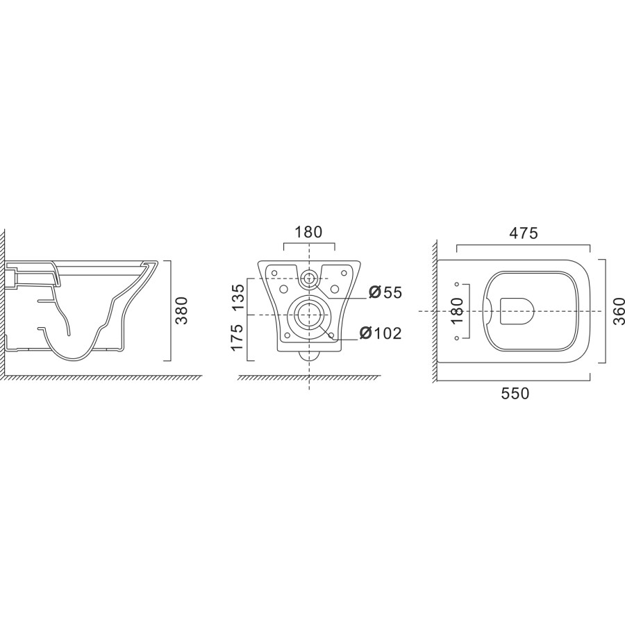 This wall hung toilet with a square pan design has been manufactured from high-quality ceramic and makes a perfect addition to any bathroom. It's much more hygienic too thanks to the rimless design, meaning when you flush, water is propelled around the bowl, giving it a more thorough clean. Also, it's easier to clean as it's off the floor, giving the effect of a floating toilet.
