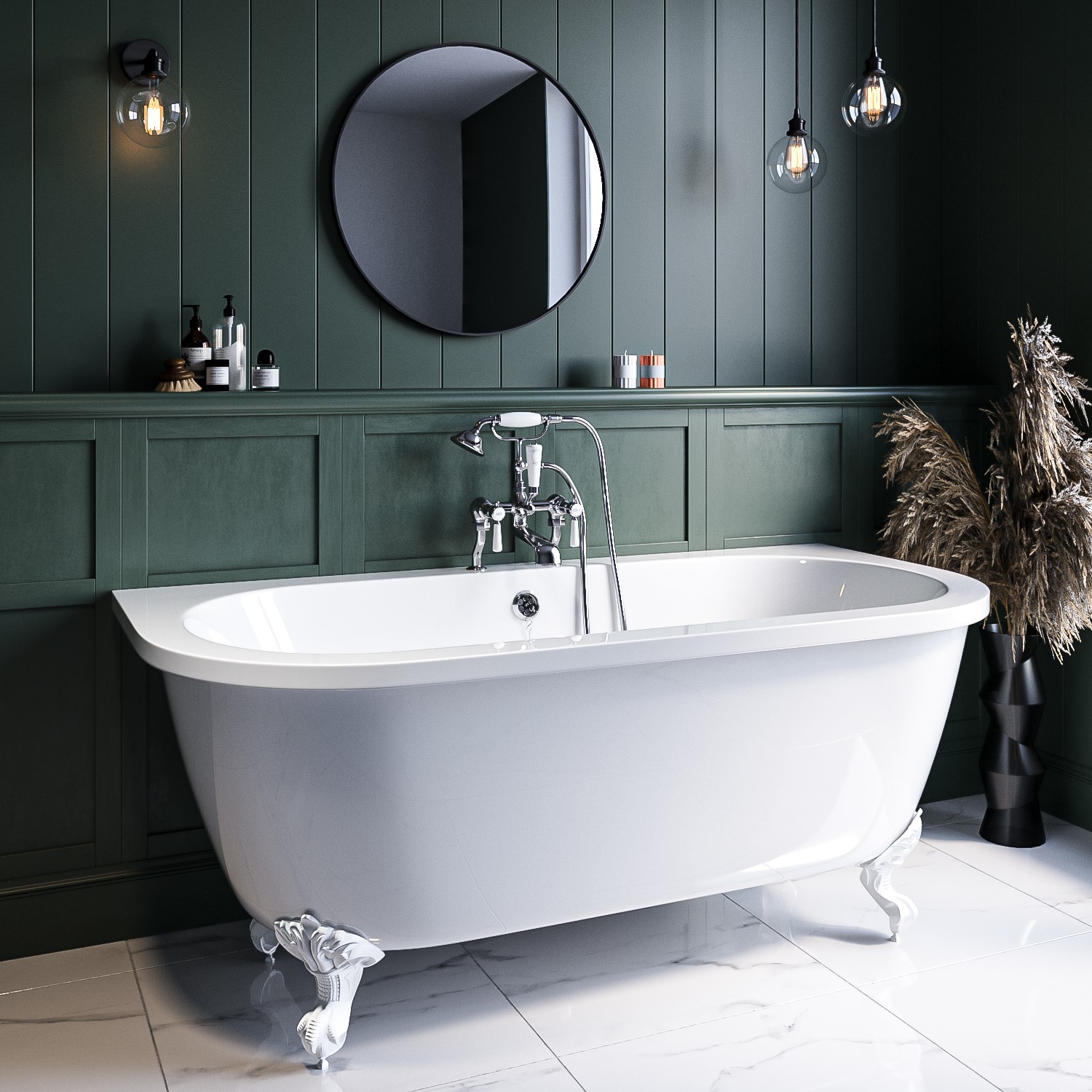 Create a grand statement with this traditional freestanding bath, combining classic elegance with modern functionality. Roll-topped and double-ended, it features smooth, curved edges for a luxurious and relaxing bathing experience at either end. The glossy finish enhances its timeless appeal, while the beautifully ornate matt white ball and claw feet add a striking contrast, making it a true centrepiece in any bathroom. Crafted from high-quality materials, this bath offers both style and durability, ensuring a long-lasting, elegant addition to your home. Its timeless design blends seamlessly with both classic and contemporary interiors, making it a perfect choice for those seeking sophistication and charm.