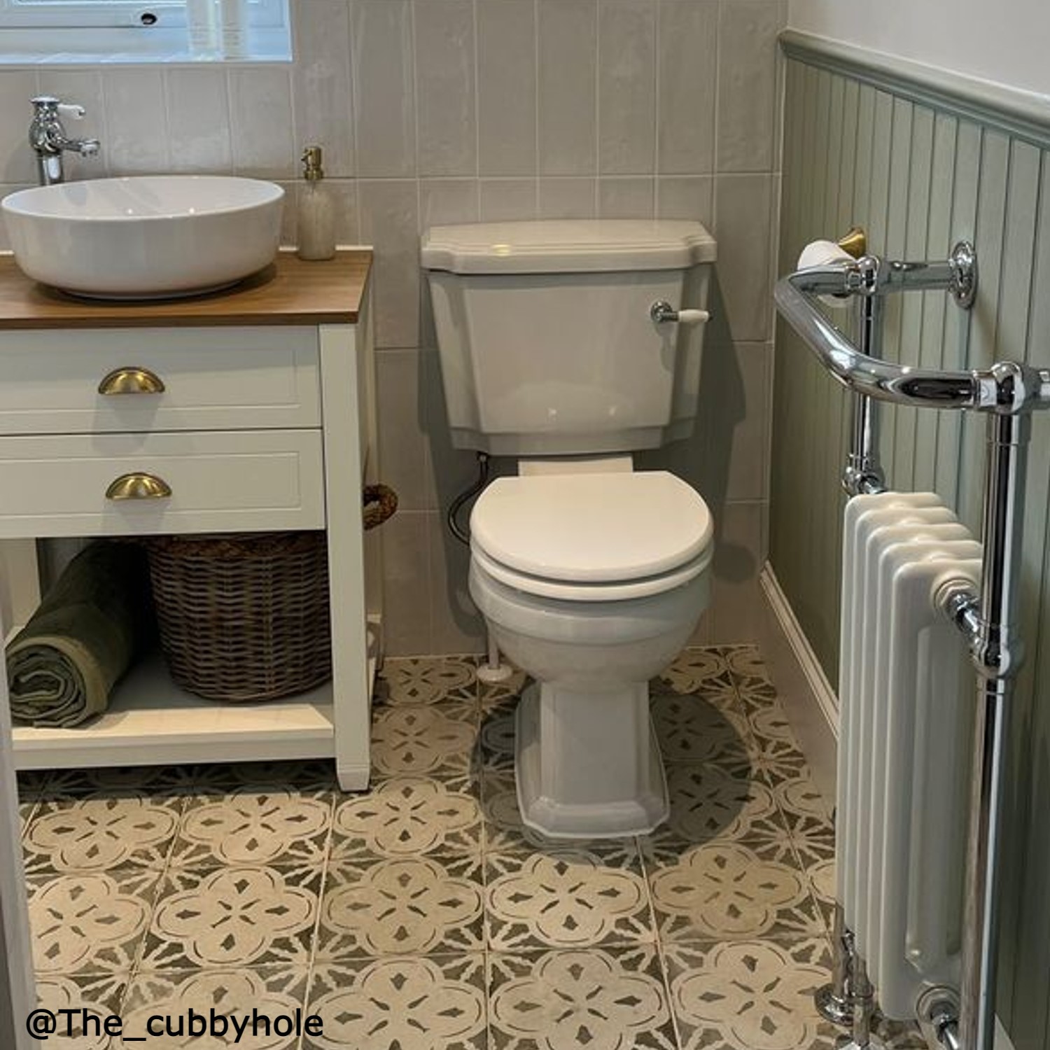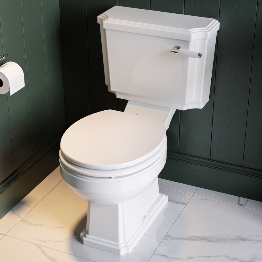 Victorian-Inspired Design: Classic close-coupled toilet with elegant period-style features, ideal for traditional bathrooms.