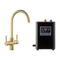 The Rangemaster GEO Intense 4-in-1 kitchen tap provides instant steaming hot 98°C water, crystal clear filtered water, and domestic hot and cold water on demand thanks to its compact, yet large capacity boiler which holds 2.1 liters. This Rangemaster product comes easy to install and packs together in one box, everything you need altogether. To control flow, the handle has been ergonomically designed by Rangemaster with safety in mind thanks to its push lever mechanism, which operates the tap by pushing down the lever and pulling forwards.