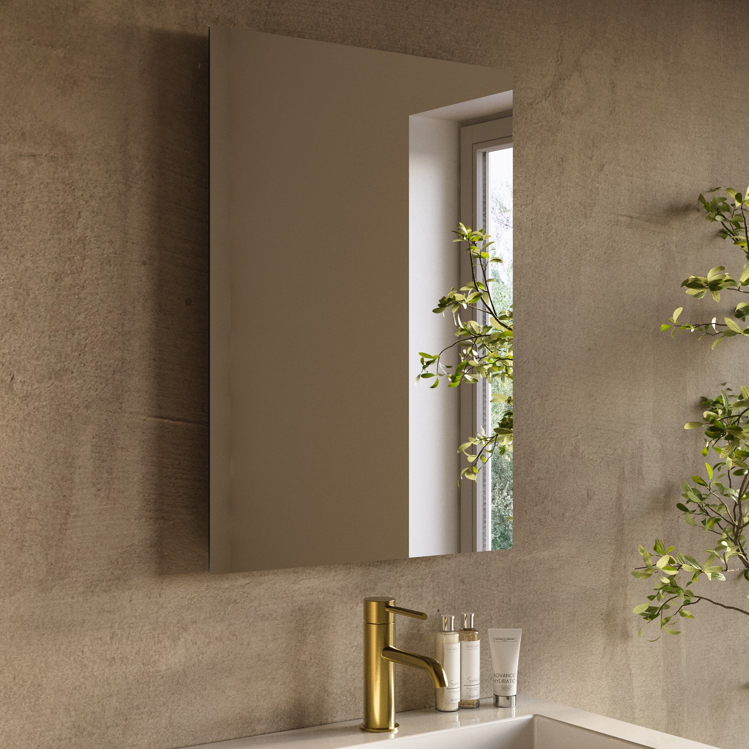 The battery box is conveniently located on the back of the mirror. Simply remove the cover from the battery compartment, insert 8 AA batteries (not included), then reattach the cover. In portrait installation, the rocker switch is conveniently positioned at the bottom right corner for easy access and operation. Use this to turn the mirror's lights on and off. This small battery powered mirror with lights is IP44 rated, making it perfectly safe for bathroom use. The frameless rectangular design is ideal for enhancing any space with minimal fuss, whilst still providing a sophisticated contemporary touch. For optimal performance, we recommend using high- capacity alkaline batteries. Using lower- capacity batteries may reduce brightness and shorten battery life.