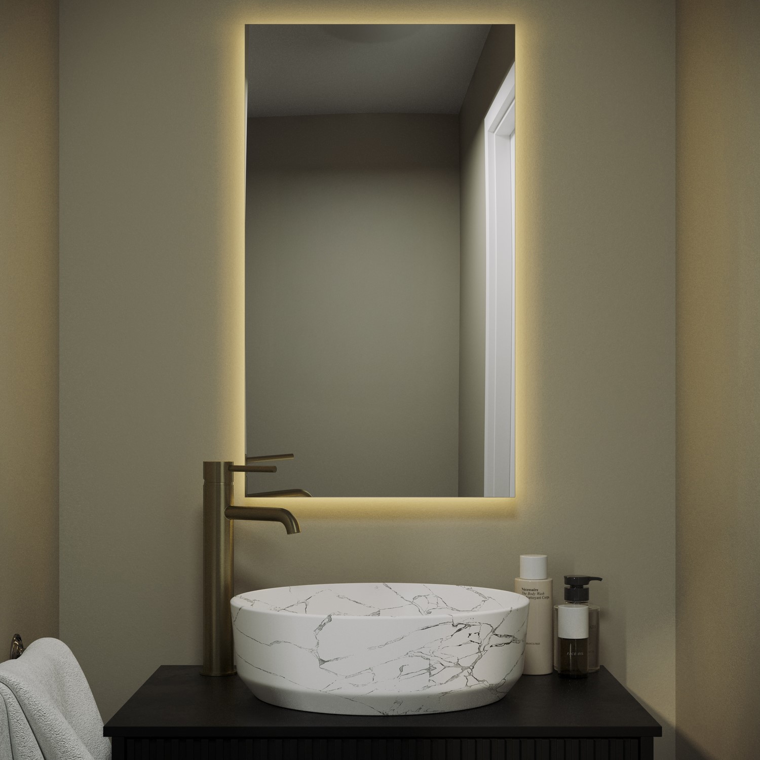 Upgrade your space with the Vela bathroom mirror with lights, designed to blend modern style with everyday convenience. This small rectangular bathroom mirror can be mounted portrait or landscape to suit your layout. Designed with dimmable, colour-changing LED lighting, the Vela mirror lets you tailor both brightness and tone to your mood. Effortlessly transition between cool white (6500K), natural light (4500K), and warm white (3000K) illumination, ensuring perfect lighting for every moment — from energising morning routines to relaxing evening wind-downs. The innovative motion sensor is located on the bottom right-hand side for easy touch-free control. To turn the small mirror on/off, simply wave your hand underneath the sensor at a distance of 5cm. This will also activate the demister pad which will help to keep the mirror fog free. To use the dimmable feature hold your hand underneath the sensor once the lights are activated. This will allow you to control the level of brightness. To change the colour temperature, wave your hand past the motion sensor to switch between warm white (3000K), natural white (4000K), and cool white (6500K). The built-in memory function automatically saves your preferred brightness and colour temperature settings, so your mirror remembers exactly how you like it every time you switch it on – no need to readjust with each use.