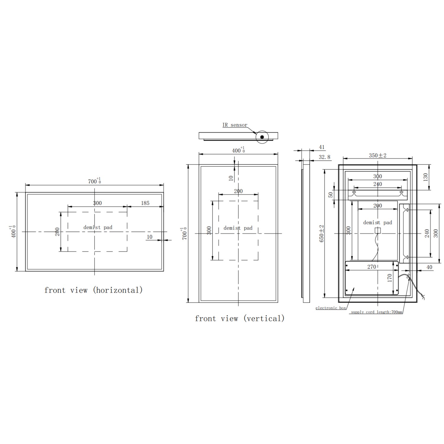 - Mirror Dimensions: W400 x H700 x D41mm