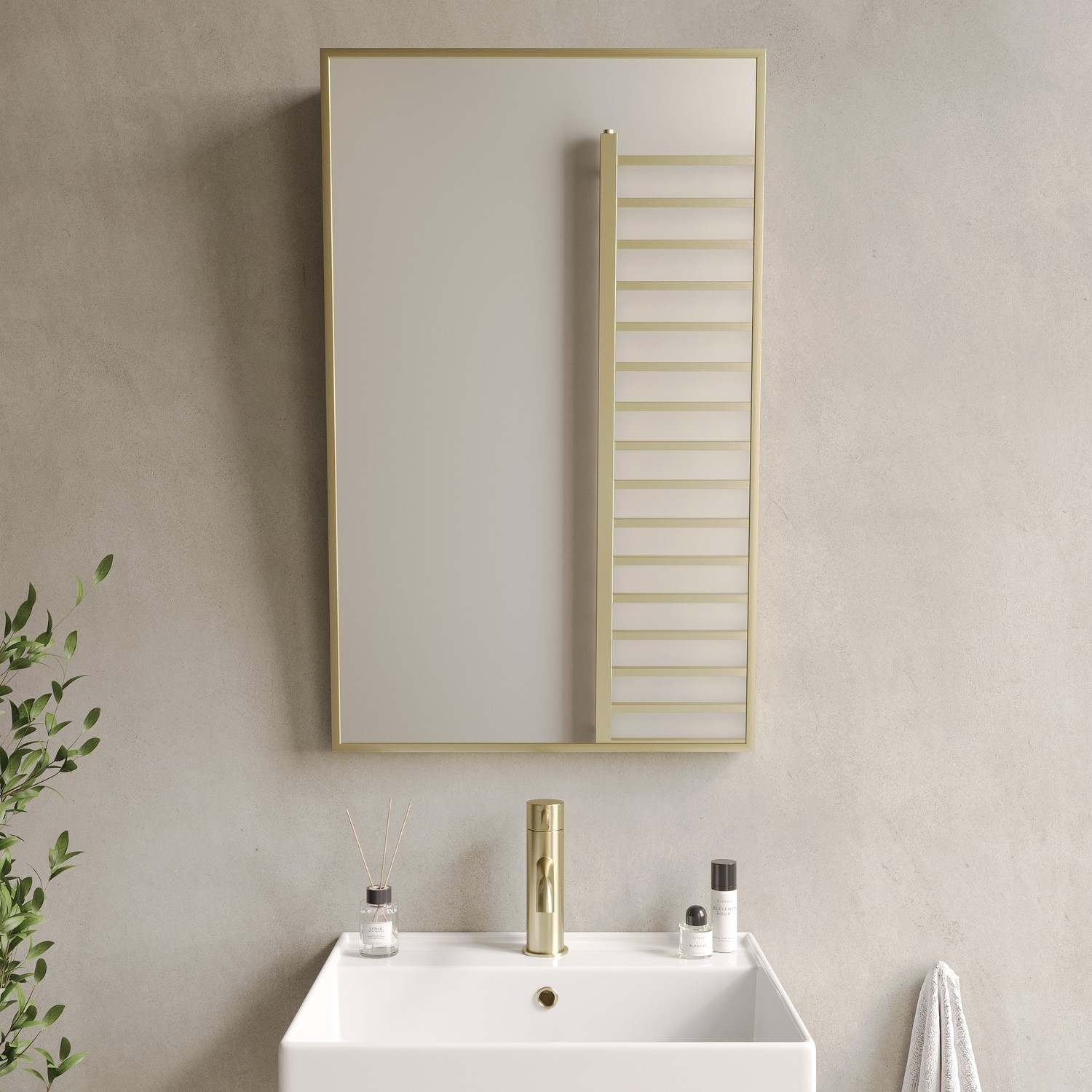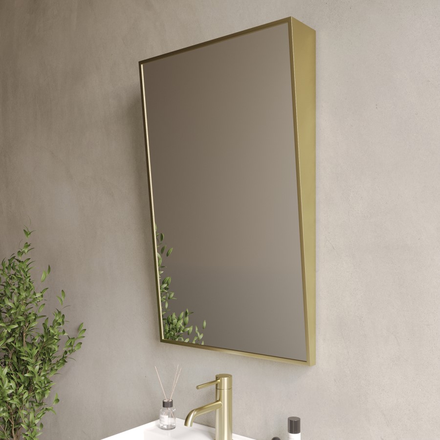 Transform your bathroom with this striking Arissa angled mirror that combines contemporary elegance with inclusive functionality. The thoughtfully angled design creates an eye-catching architectural feature while ensuring clear visibility for all users. The premium brushed brass aluminium frame adds a luxurious metallic accent that beautifully complements modern bathroom fittings, while the rectangular shape maximizes reflection and the unique angled positioning offers superior viewing angles that traditional flat mirrors cannot match.