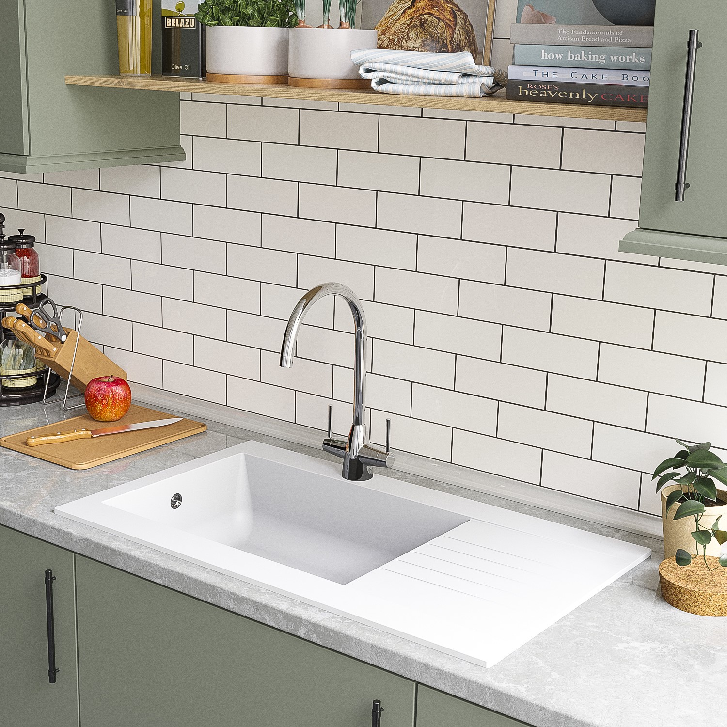 - Stylish white inset kitchen sink