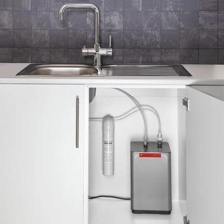 - 3 in 1 chrome hot water tap, including tank and filter unit