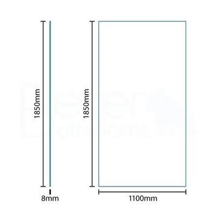A frameless 1850 x 1100 wet room screen manufactured from 8mm glass.