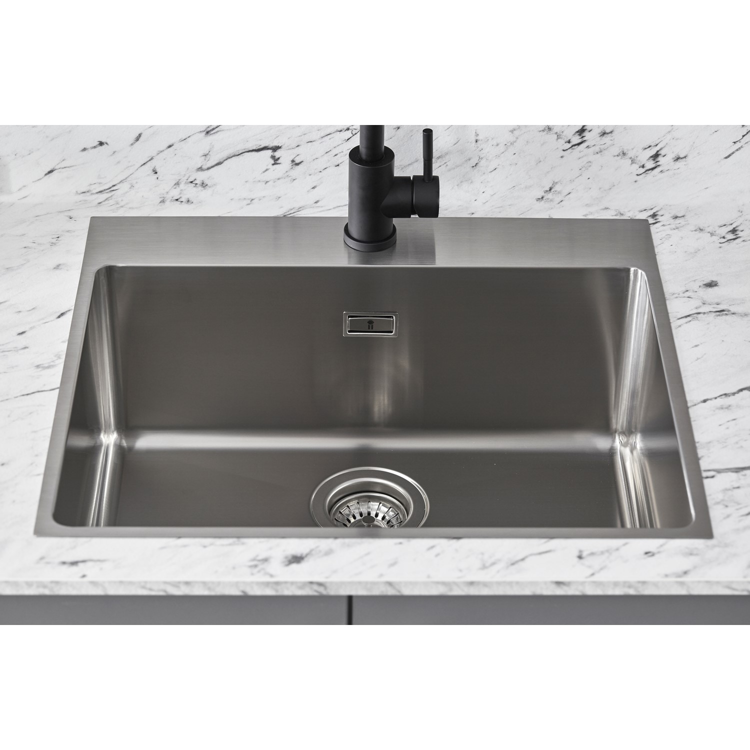 Bring practical style and everyday convenience to your kitchen with this modern stainless steel sink, thoughtfully designed to suit busy family homes and compact spaces alike. The generous deep bowl offers ample room for washing dishes, rinsing ingredients, and handling daily kitchen tasks with ease. A built-in tap deck helps catch drips and prevent water from spilling onto your worktop, helping you maintain a cleaner, more organised kitchen environment. Crafted from high-quality stainless steel with a sleek chrome finish, it delivers a premium, contemporary look that complements modern interiors beautifully. Perfect for smaller kitchens, its compact design maximises functionality without overwhelming your space. The sink also includes a chrome basket strainer waste for added convenience and a coordinated finishing touch. With a rust-resistant build, it maintains its shine and durability over time, ensuring long-lasting performance. Thanks to its simple inset installation, fitting this sink is quick and hassle-free—making it an excellent choice for any modern kitchen.