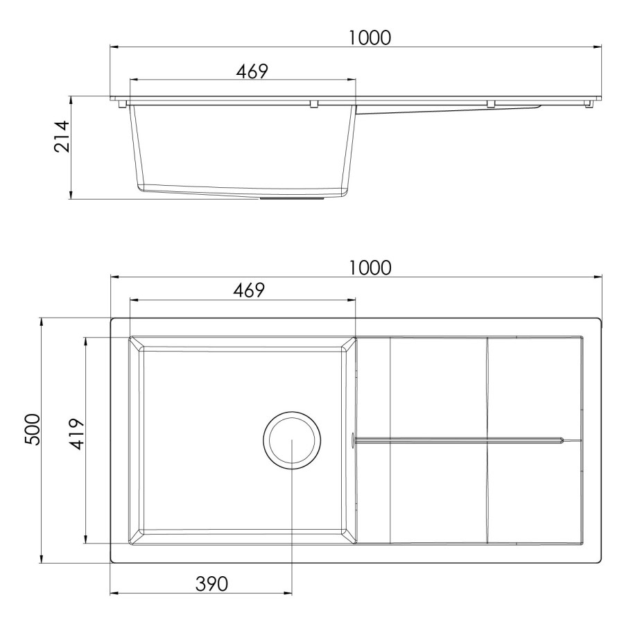 - Sink Size (mm): L1000 x W500 x D214