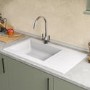 Crafted from a high-quality composite resin, this sink combines durability with everyday practicality. It’s resistant to scratches, stains, and heat, ensuring it stays looking flawless even in the busiest kitchens. The smooth, non-porous surface makes cleaning effortless, helping you maintain a spotless finish with minimal effort.
