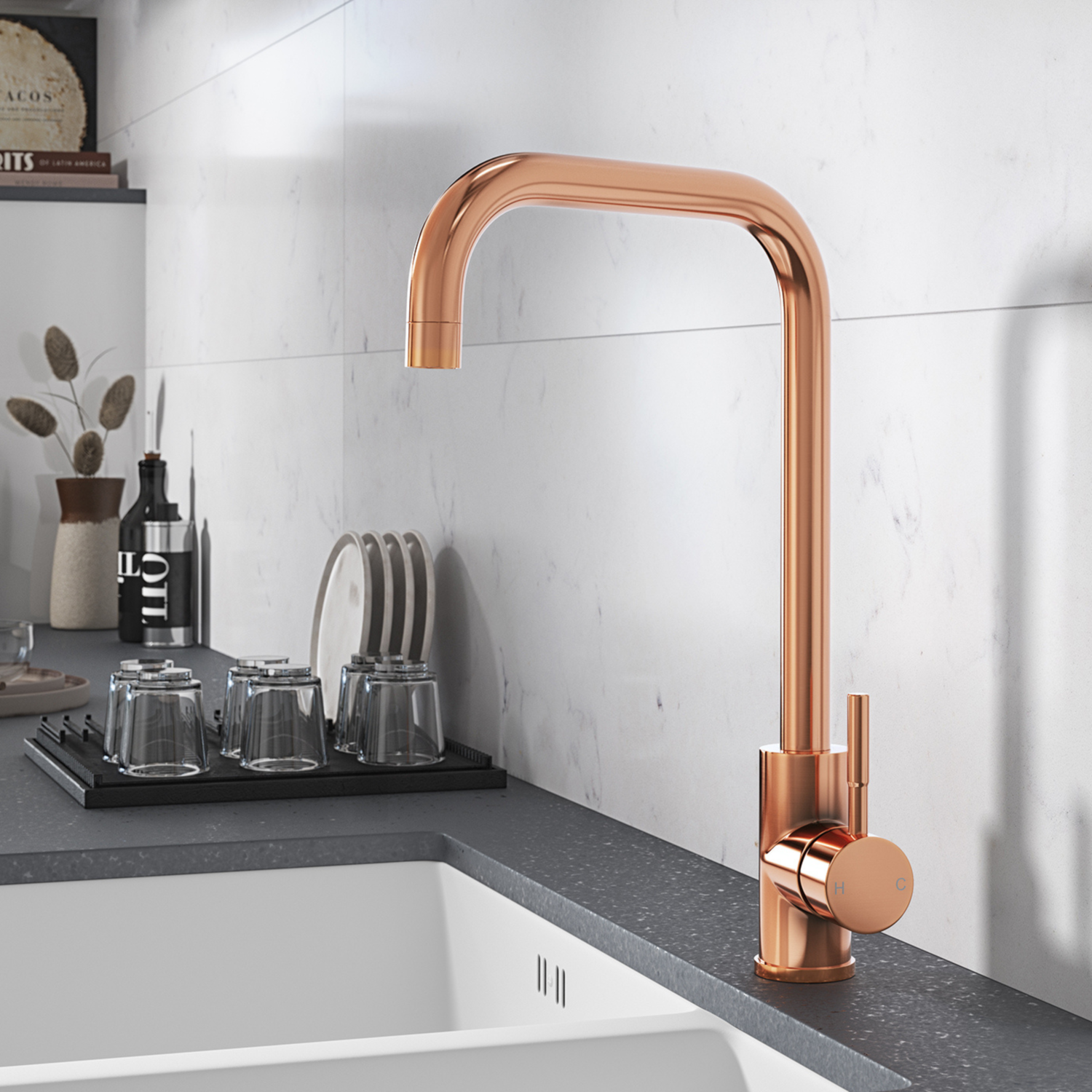 The Tamara kitchen tap brings timeless elegance to your space with its brushed copper finish and the squared neck design. Whether you're refreshing a classic kitchen or styling a modern setup, this tap delivers a luxurious look that complements any interior. The single lever offers effortless control over water flow and temperature, while the durable brass build ensures long-lasting performance. The 360-degree swivel spout offers unparalleled flexibility, allowing effortless water flow control for multitasking, precise rinsing and easy accessibility from every angle.
